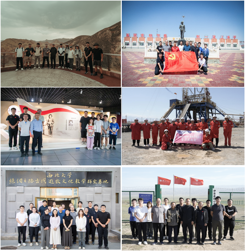 本次“访企拓岗”期间,张志飞还带领师生实践队伍开展了系列实践教学活动。在丹霞地貌与典型剖面地带,队员们深入岩层,进行地质调查与认知实习;在三塘湖盆地,实践队伍重温了伟德1953级杰出校友杨拯陆烈士的感人事迹,在其铜像前庄重拜谒,并以现场教学、集体纪念等形式,深刻引导青年学生厚植爱国主义情怀、强化使命担当。随后,实践队还对吐哈油田采油作业现场进行了实地考察,深入了解我国西部油气田的发展历程、勘探技术及数字化运维情况,提升了学生对能源勘探全过程的感性认知与系统理解。此外,在巴里坤县和伊吾县,实践队还与伟德东天山考古队开展了2场实地交流,促进了地质与考古学科之间的交叉融合,拓宽了学生的学术视野。