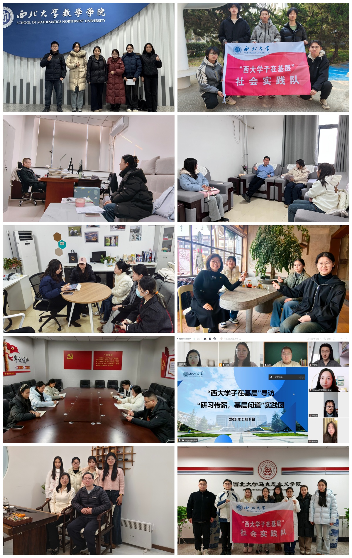 马克思主义学院“红桅领航·星火传秦豫”实践团赴陕豫多地,以理论宣讲与实地调研探索党的创新理论赋能基层路径;数学学院“春晖润晚晴,温情暖夕阳”志愿服务队走进西安养老中心开展助老服务;哲学学院“眉坞智农·猕乡振兴”实践团在陕西眉县探寻智慧农业发展模式;新闻传播学院“丹凤林韵·核药兴乡”团队在院长带领下赴陕西丹凤县,与当地林业部门座谈,依托学科优势为林下经济与特色农产品宣传赋能,推动生态资源转化为乡村振兴经济增量,各团队以专业所长服务乡村发展,为和美乡村建设注入青春动能。