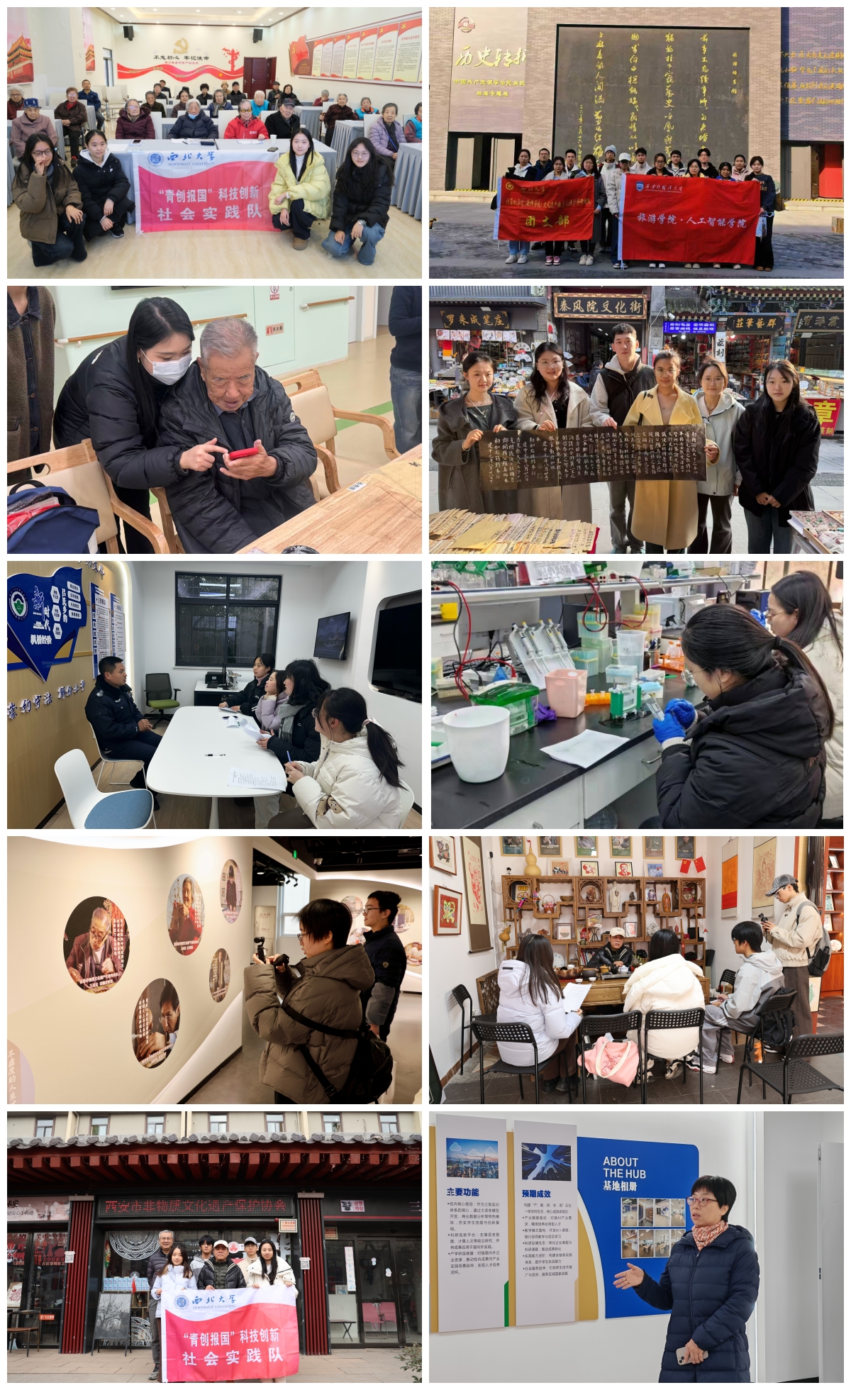 “西”阳敬老智行团将科技调研与敬老服务结合,走进长安区养老院传递青年温情;南京栖霞山千佛崖调研小队开展石窟文物专项调研,完成图像采集、病害分析,为文物保护修复提供数据支撑;“茯见咸阳”调研团赴咸阳茯茶小镇,探索文旅融合与数字化发展路径;“一颗‘猕’踪实践调研队”深入陕西眉县企业,调研猕猴桃全产业链与深加工技术,验证数字档案项目可行性,为农业产业升级提供思路;哲学学院“伦理长安,家责同研”调研队在西安社区开展养老与家庭伦理调研,完成大量问卷与访谈,形成详实调研资料,各团队以科创与调研践行青年担当,助力社会发展与文化传承。