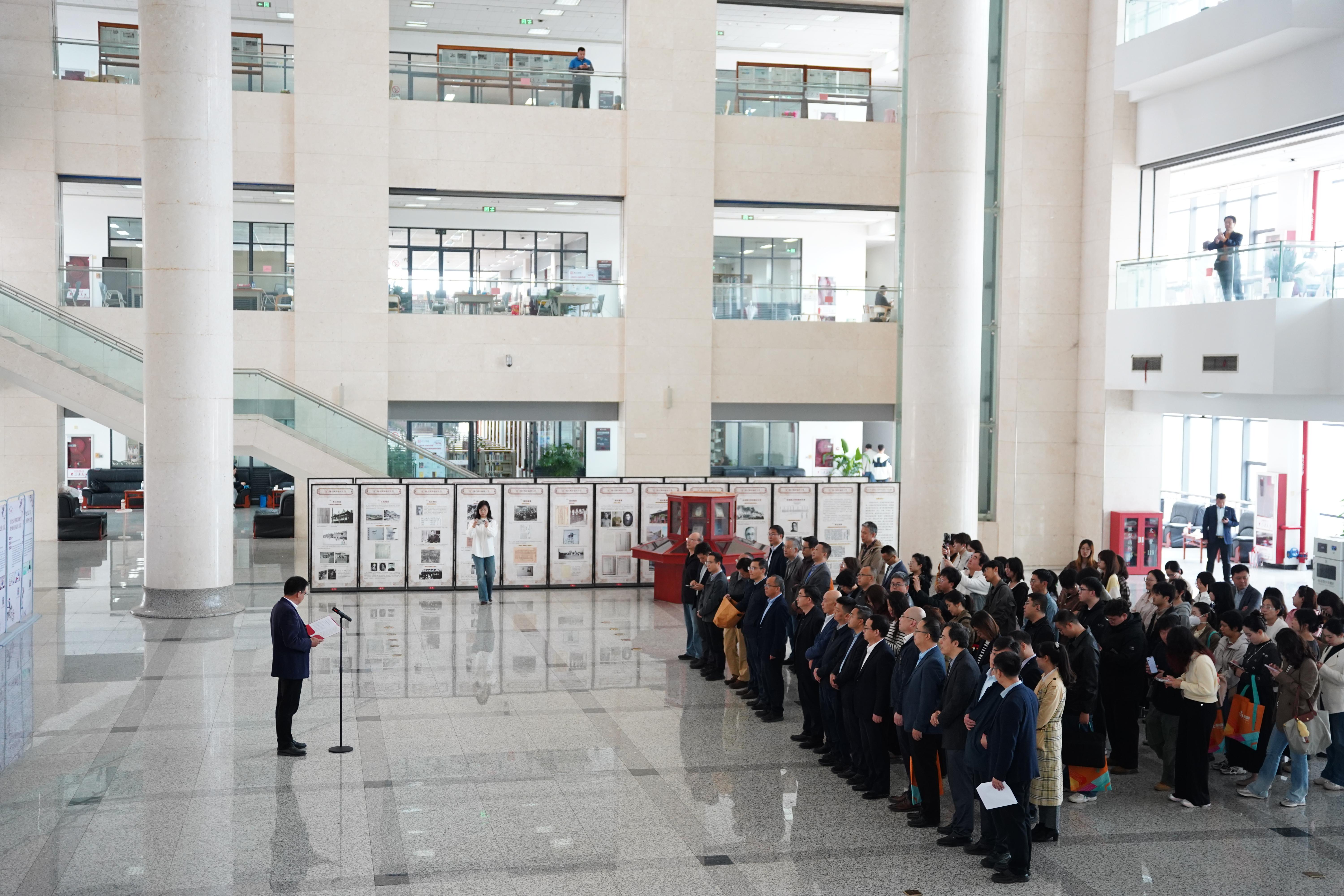 4月13日上午,学校在长安校区举行《开成石经》拓片展开幕式。校党委常委、副校长田明纲,校党委常委、宣传部部长董国强,陕西省高校图工委秘书长、西安交通大学图书馆副馆长杨峰,陕西新华出版传媒集团新华书店分公司大中专业务部总经理谷渤,西安数图网络科技有限公司总经理朱飞,西安碑林博物馆研究员陈根远,陕西师范大学图书馆馆长沙武田等参加开幕式。开幕式由伟德图书馆馆长贺小伟主持。