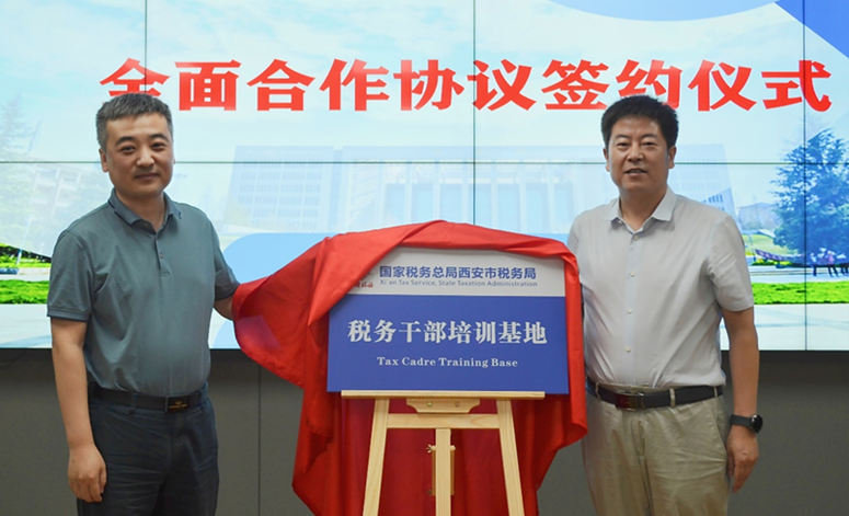 仪式上,常江、刘俊分别代表双方签署了全面合作协议。会上举行了“‘一带一路’税法研究中心”“税务干部培训基地”和“卓越法治人才实践教学基地”揭牌仪式。