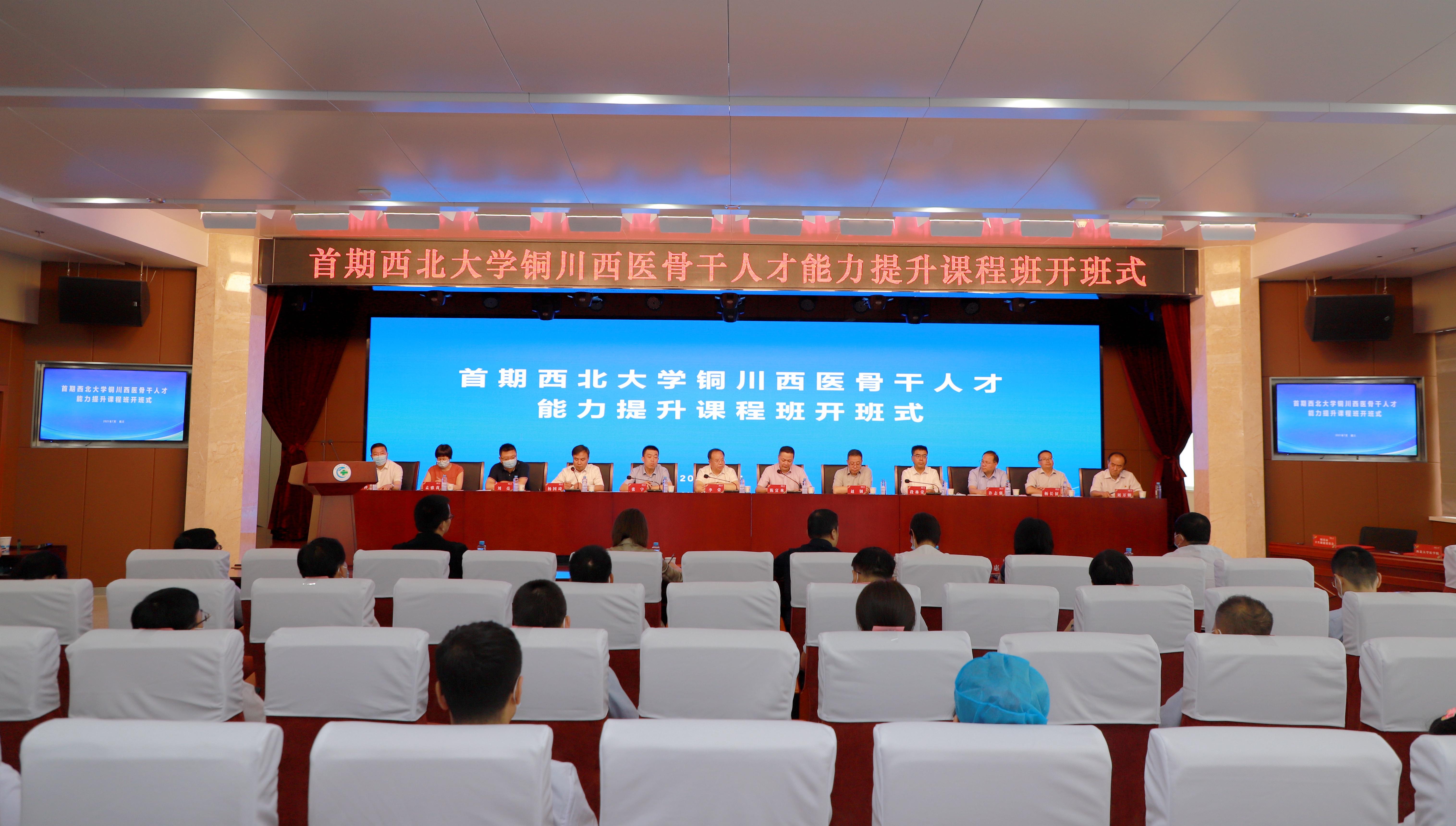 7月5日上午,伟德国际1949始于英国铜川西医骨干人才能力提升课程班开班仪式在附属铜川医院举行。铜川市政府副市长李荣,伟德党委常委、副校长陈富林出席仪式。铜川市卫健委、市委人才办、市教育局、市人社局、市财政局等部门负责人,各区县卫健局局长,市内二级以上医院负责人,伟德医学院负责人以及铜川医务人员160余人参加了仪式。开班仪式由铜川市政府副秘书长杨国琦主持。