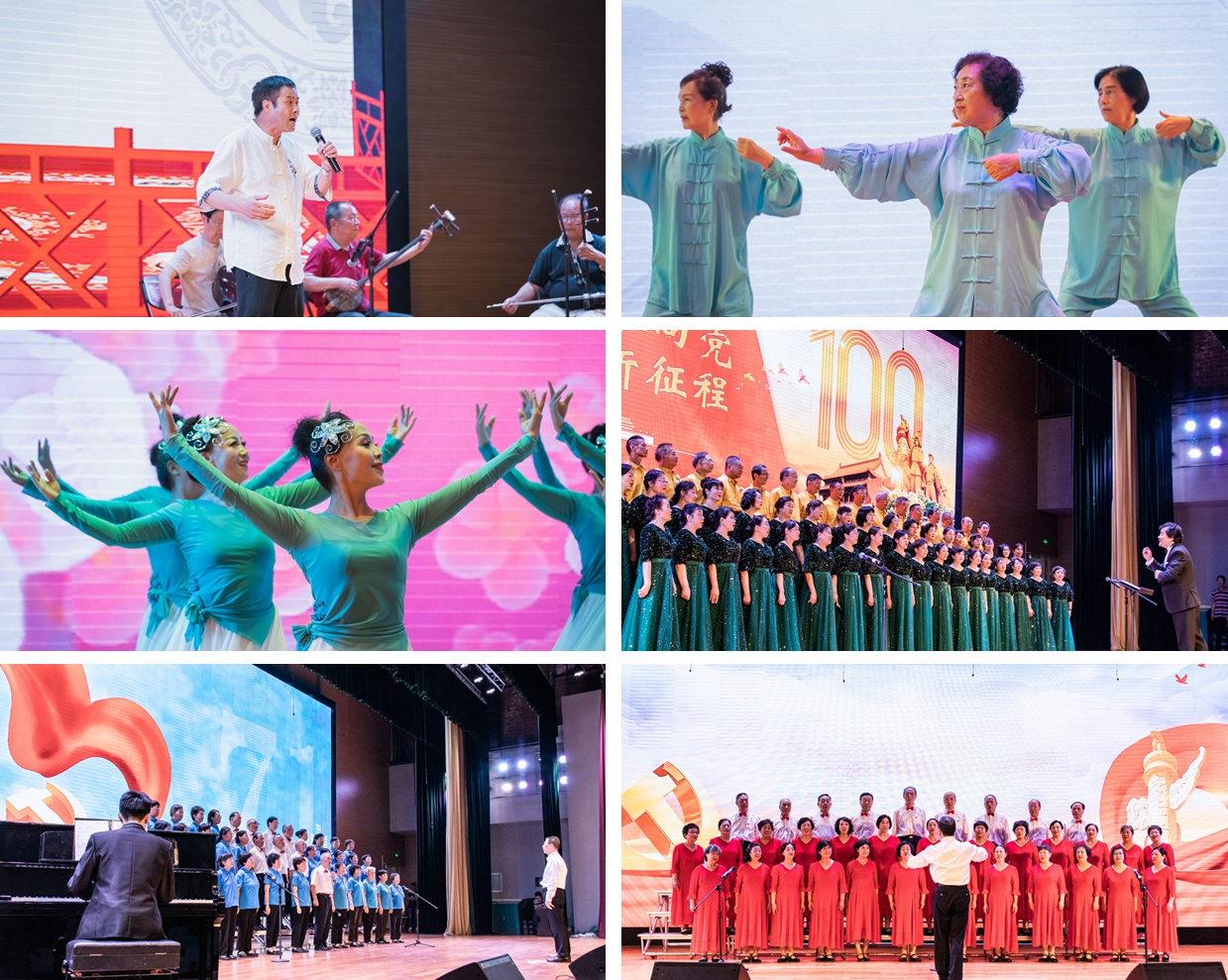 仪式结束后,与会人员共同观看了“红心永向党 启航新征程”庆祝建党100周年文艺演出。演出由伟德200余名离退休教职工精心筹备,通过多样化的节目向党的百年华诞献礼,抒发了老同志们对党和国家的忠诚与热爱,表达了不忘初心、再创辉煌的的坚定信念。