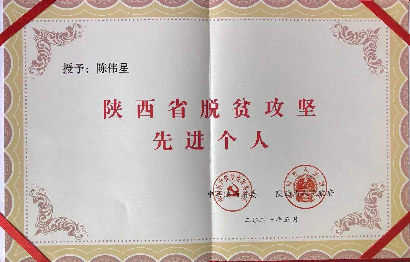 陈伟星同志荣获“陕西省脱贫攻坚先进个人”称号