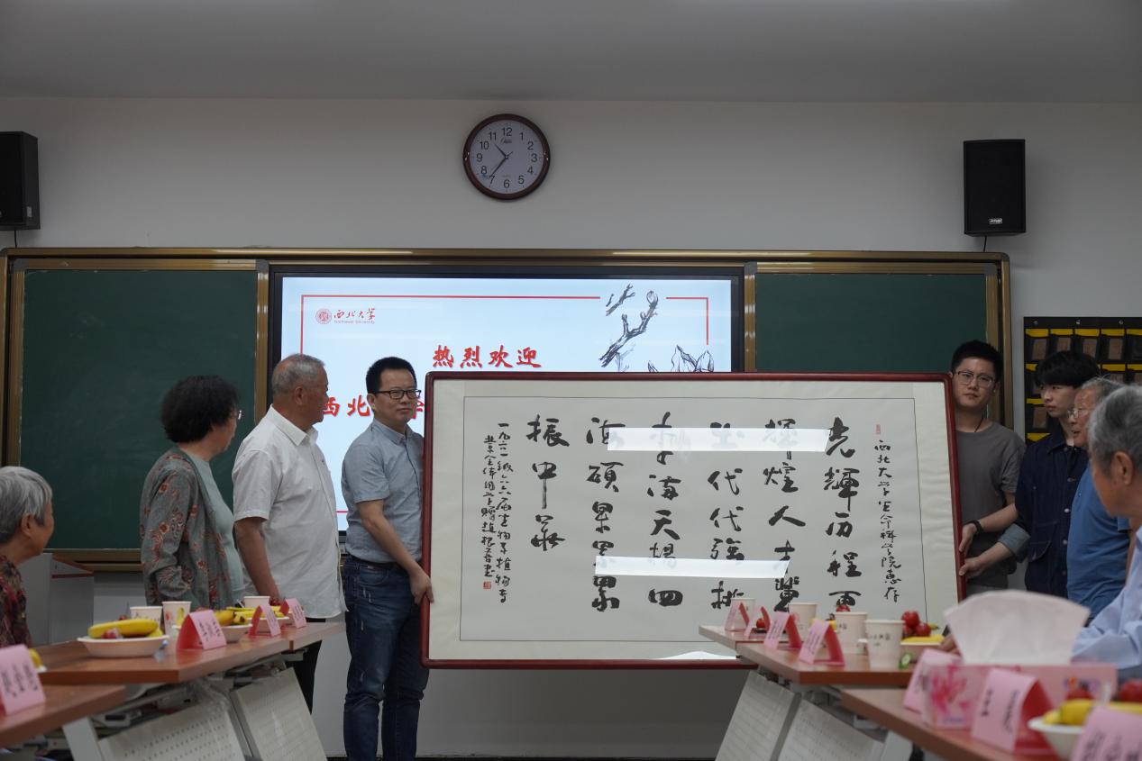 座谈结束后,校友们向生命科学学院赠送了精心挑选和制作的字画。生命科学学院向校友们赠送了蓝田玉印章和校史书籍。