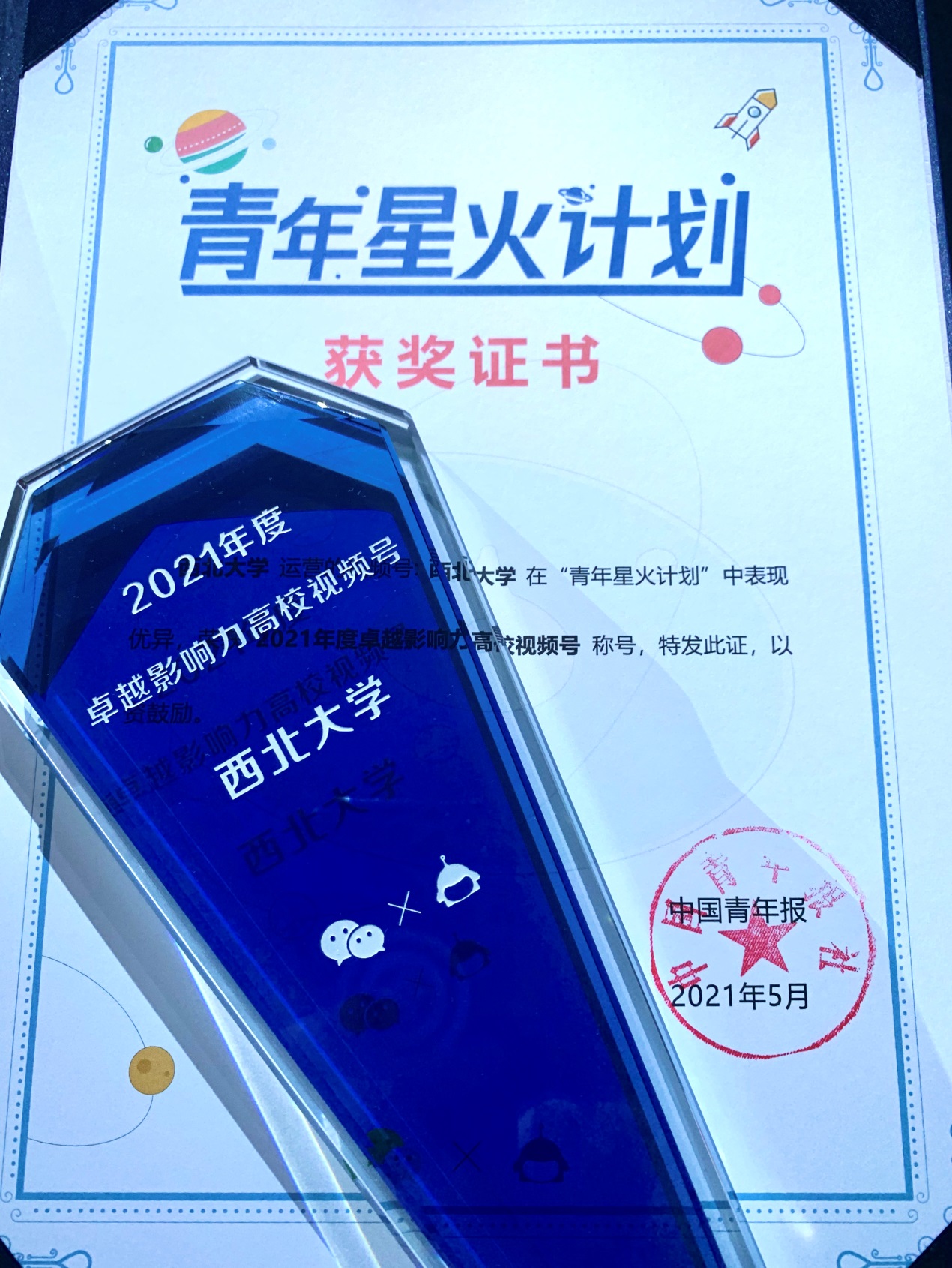 5月7日,由中国青年报,中青校媒与腾讯微信视频号共同举办的“创造正当年,青年星火计划·高校创造营专场”在深圳举行。伟德官方微信视频号荣获“2021年度卓越影响力高校视频号”称号。