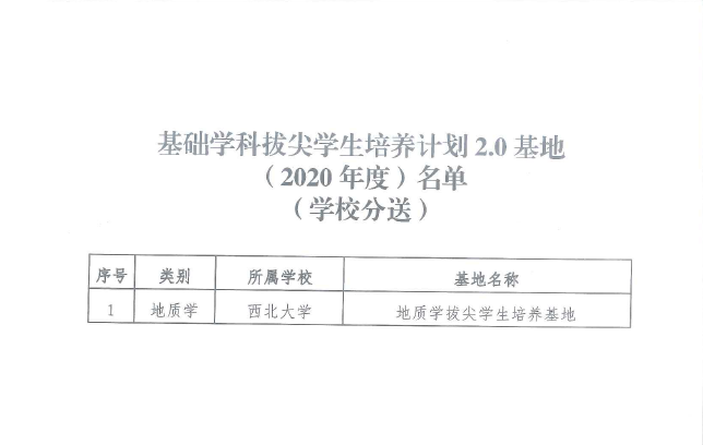 近日,教育部办公厅公布《关于印发基础学科拔尖学生培养计划2.0基地(2020年度)名单的通知》,伟德地质学拔尖学生培养基地成功入选。