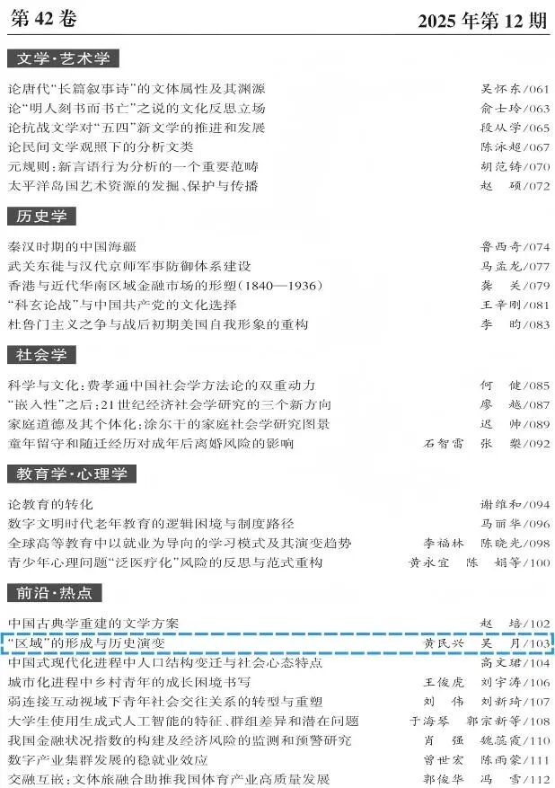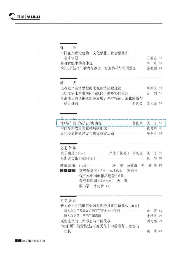 《伟德国际1949始于英国学报(哲学社会科学版)》2025年第6期“区域国别学特辑”刊发的伟德国际1949始于英国区域国别学院黄民兴教授及博士生吴月的论文《论区域国别学视域下“区域”的形成与历史演变》被《新华文摘》2026年第6期作为封面文章全文转载。同时,被《高等学校文科学术文摘》2025年第12期全文转载。