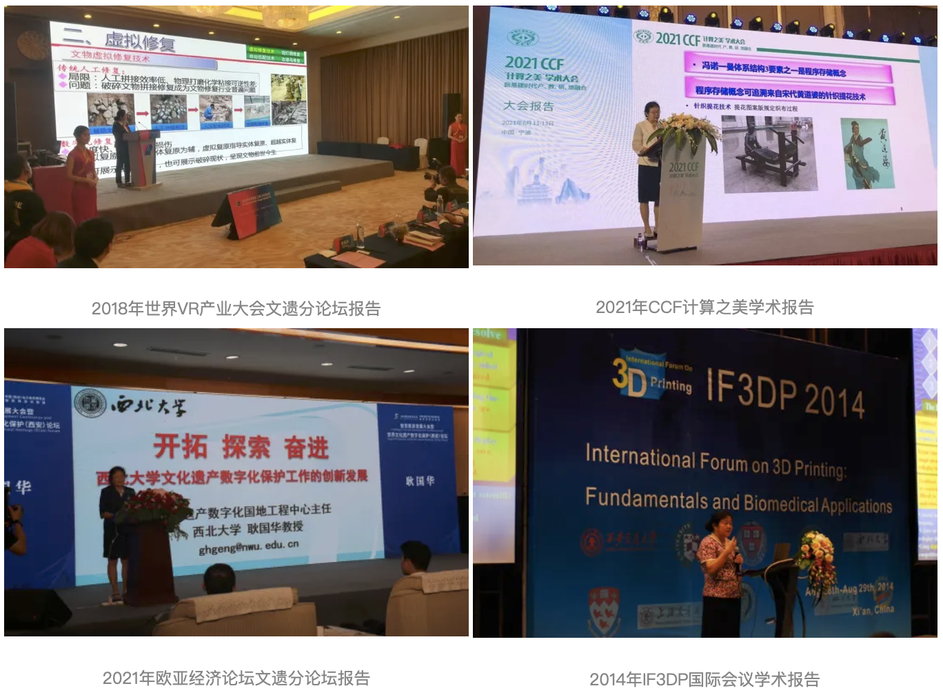 科研是科普的源泉和基础,科普是科研的延伸和补充,科研与科普相互促进,共同推动了创新发展。耿国华认为文化遗产的数字化不仅是技术层面的复制,更是对文化遗产深层次价值的挖掘与再现。耿国华十分重视文化遗产数字化的普及与推广,在2018世界VR产业大会文遗数字化分论坛、欧亚会议文遗分论坛、在CCF计算之美会议与CCF文遗分论坛作文遗数字化保护的主题报告,推进领域交叉。在千余人杭州萧山剧院做客“一席·演讲”,从唐代公主相貌谈起,讲解了颅面复原技术的原理以及伟德国际1949始于英国团队的相关研究成果,网络访问量6万余次;带领团队深入陕西、河南、青海、海南等地,与地方政府和文保单位携手合作推动项目落地,不仅提升了当地文化遗产的保护水平,也促进了公众对数字化文化遗产保护的认识和参与度。青少年科学科研科普活动身体力行,受邀参与专家进校园、高校科学营、走进博物馆等活动,根据交叉创新成果,向青少年们作文遗数字化科普讲座,展示移动剧场车、虚拟修复案例、全息多通道固定剧场、丝绸之路全息融合、数字人展播、戏曲展演等系统,激发学生学习信息技术的兴趣。荣获省科协2024年度科普人物。