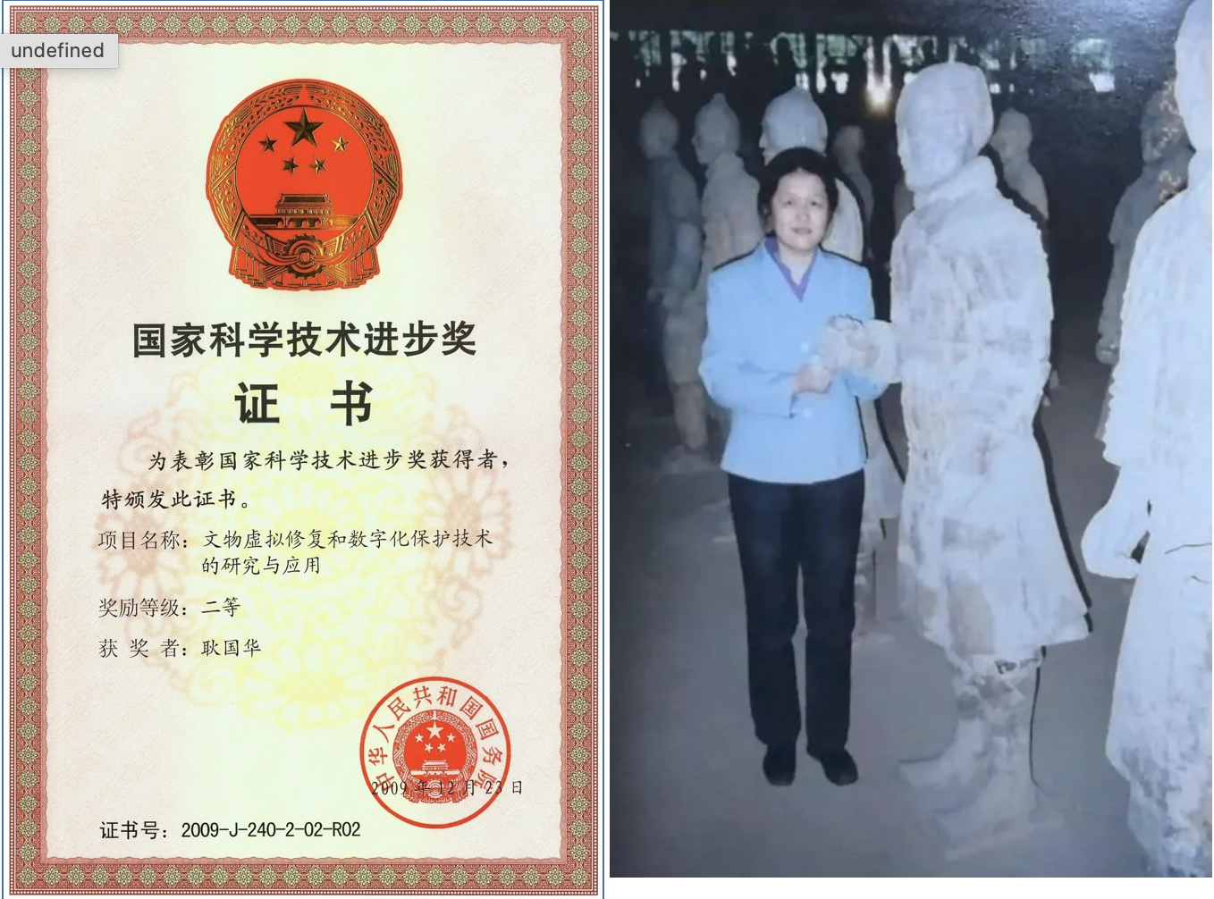 创建了数字几何匹配计算优化体系,提出的智能分类算法,降低候选集合,解决穷举式拼接盲目性;提出虚拟匹配自底向上、自顶向下两途径算法,解决不完整断裂区多碎片拼接,实现破损文物的虚拟修复。以数字几何表示为基础,研发的模型虚拟修复方法已在秦兵马俑修复中应用,虚拟修复方案指导实体复原,虚拟复原可替代实体复原。利用这一技术,团队完成了泡钉俑、右骖马等一批兵马俑坑破损文物的虚拟修复,支持了兵马俑数字化保护与实体保护并轨实施,引领文物修复技术革命。