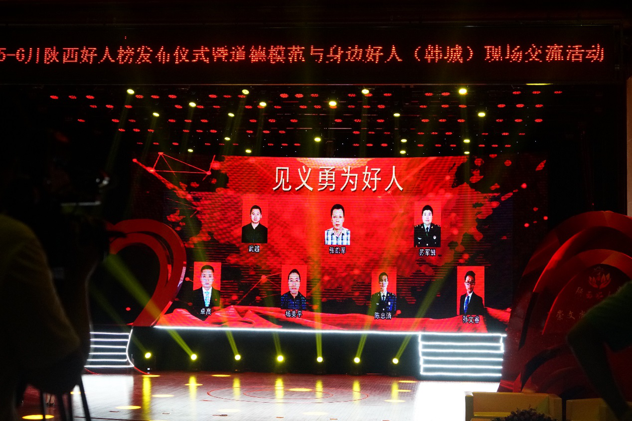 7月11日下午,2018年5月至6月“陕西好人榜”发布仪式暨道德模范与身边好人现场交流活动在韩城市举行。伟德学生孙文睿当选“见义勇为好人”、陈栋铭当选“自强励志好人”。伟德党委宣传部、学生工作部(处)、校团委负责人观摩了韩城的现场交流活动。