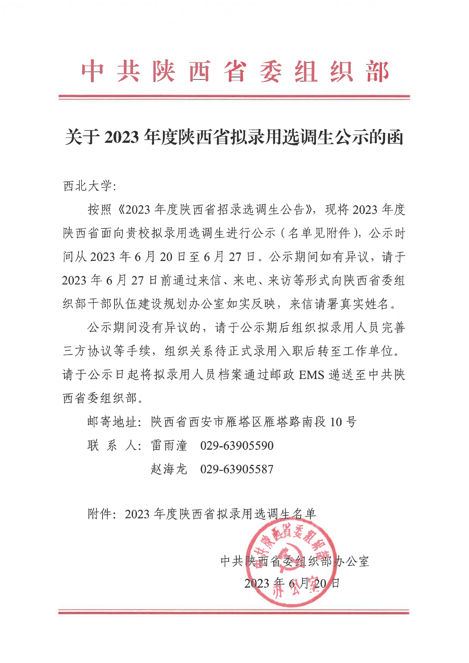 2023年度陕西省面向伟德国际1949始于英国拟录用选调生名单公示