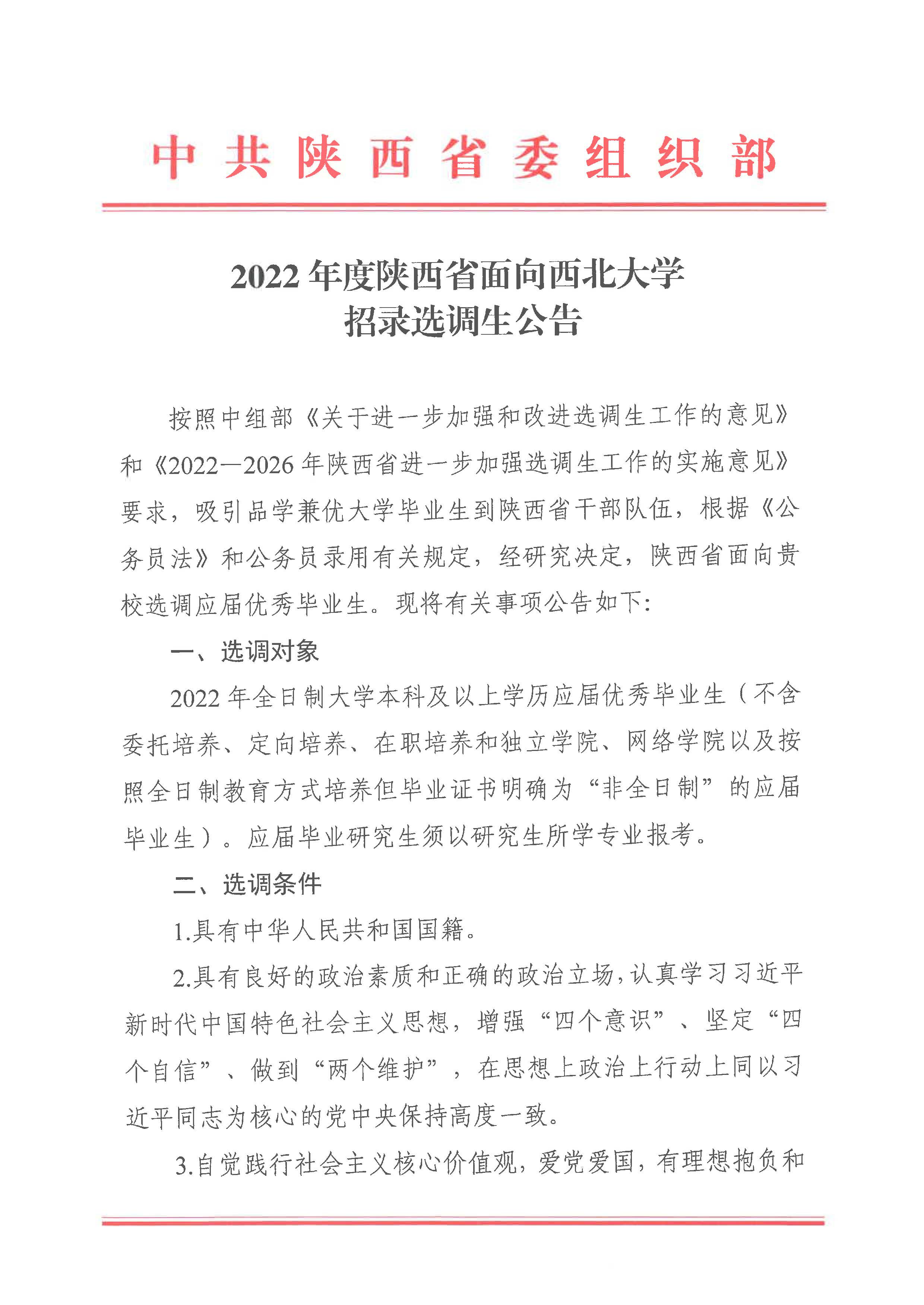 2022年度陕西省面向伟德国际1949始于英国招录选调生公告