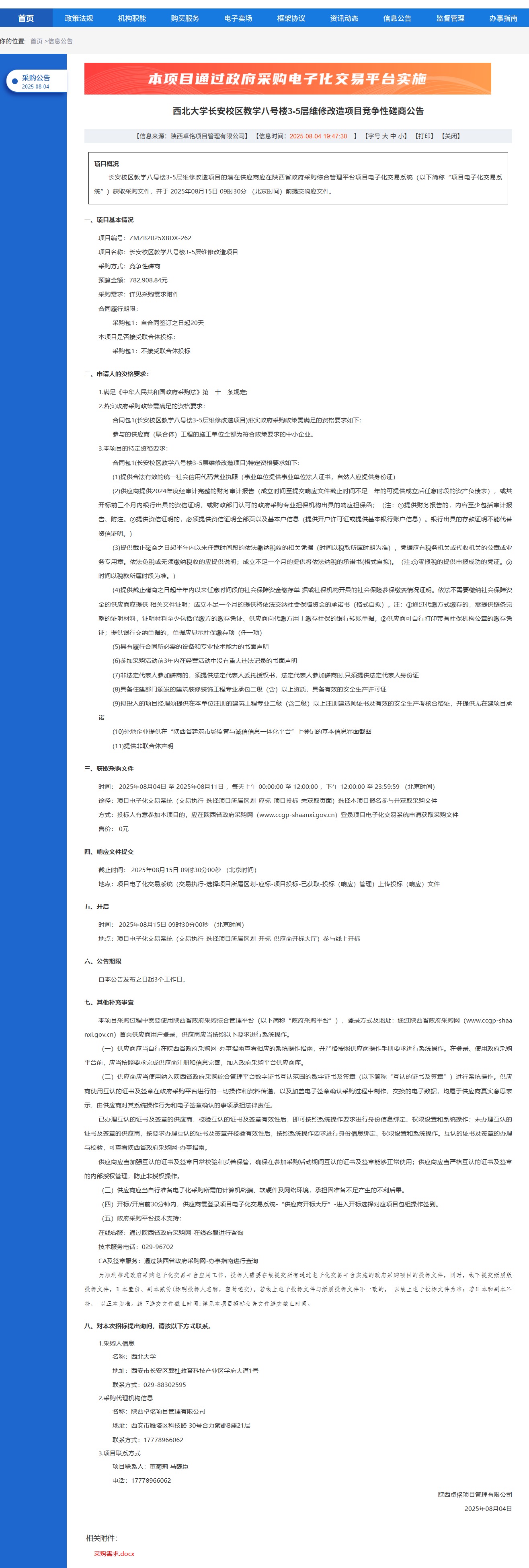 公告地址:https://www.ccgp-shaanxi.gov.cn/freecms/site/shaanxi/ggxx/info/2025/8a69c7f19860ef06019874dfc954016d.html?noticeType=001016¬iceId=d92bc43a-712a-11f0-8063-08c0eb20c666