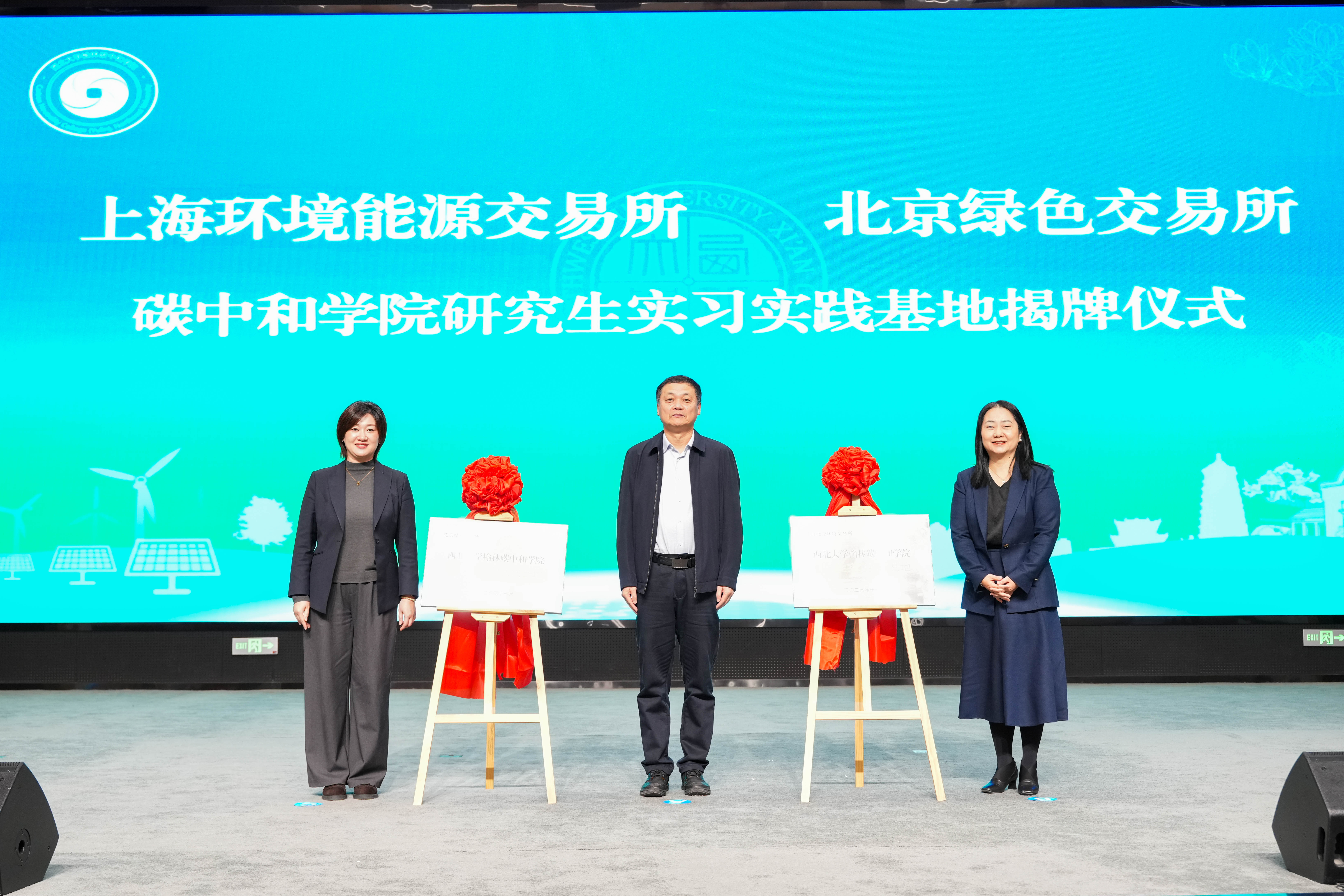 活动上,陈富林与徐鸣一、张若琰共同揭牌研究生实习实践基地。两大交易所实习实践基地的揭牌成立,将进一步拓宽学生发展视野,提升专业素养和实践能力,提高伟德碳市场与碳交易相关专业的人才培养质量。