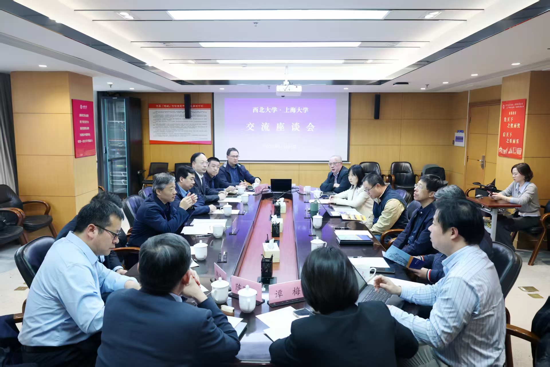 在上海大学宝山校区,该校党委书记吴坚勇会见了蒋林一行。吴坚勇简要介绍了上海大学的办学情况与“十五五”发展思路。蒋林介绍了学校发展历程与“十五五”规划编制情况。他指出,两校同属于“双一流”建设地方高校,且都为综合性研究型大学,希望未来能够在学科协同、项目申报、教师干部互访交流等方面进一步深化合作。双方围绕学科布局优化、科研平台建设、人才引育机制、重点工程谋划等方面开展了交流研讨。