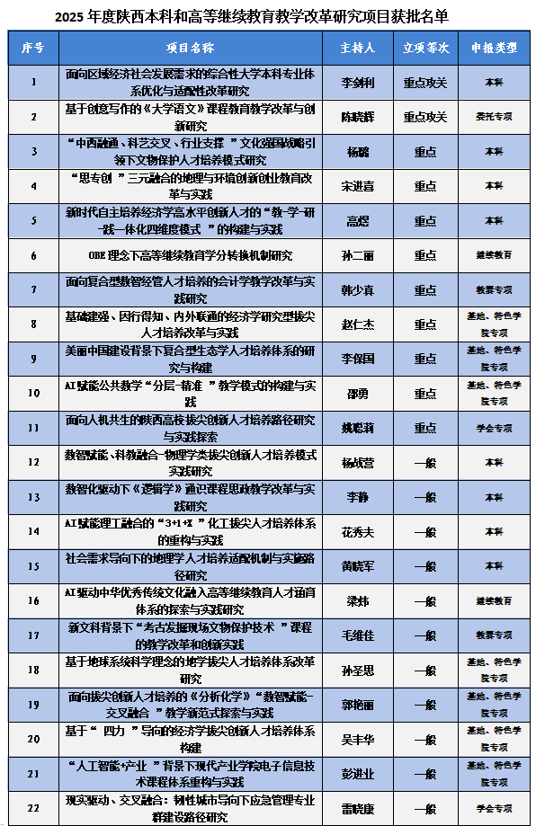 近日,陕西省教育厅公布了2025年度陕西本科和高等继续教育教学改革研究项目立项结果,伟德22个项目入选。