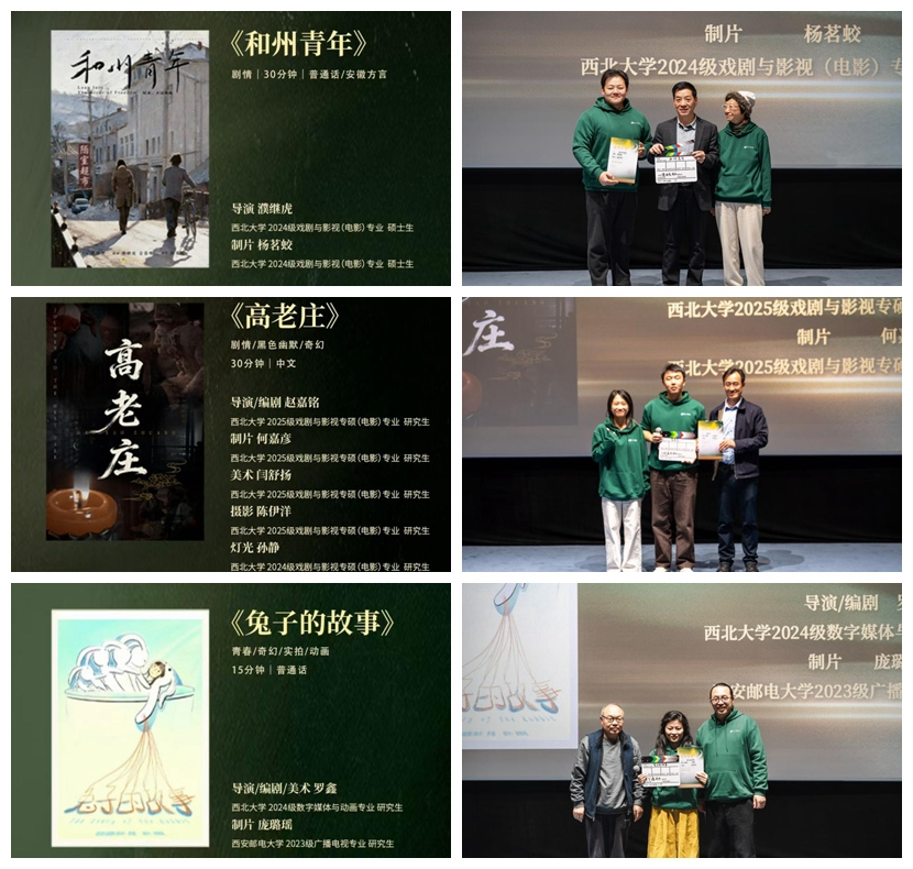 活动现场,20个入围团队进行了项目陈述、概念片展示,经过评审团专业评议,包括伟德2024级戏剧与影视专业硕士研究生濮继虎、2025级戏剧与影视专业硕士研究生赵嘉铭和2025级戏剧与影视专业硕士研究生赵嘉铭分别担任导演/编剧的《和州青年》、《高老庄》和《兔子的故事》三部作品在内的十部作品脱颖而出,获评十强优胜项目,将获得专项拍摄资金及全链条孵化支持。
