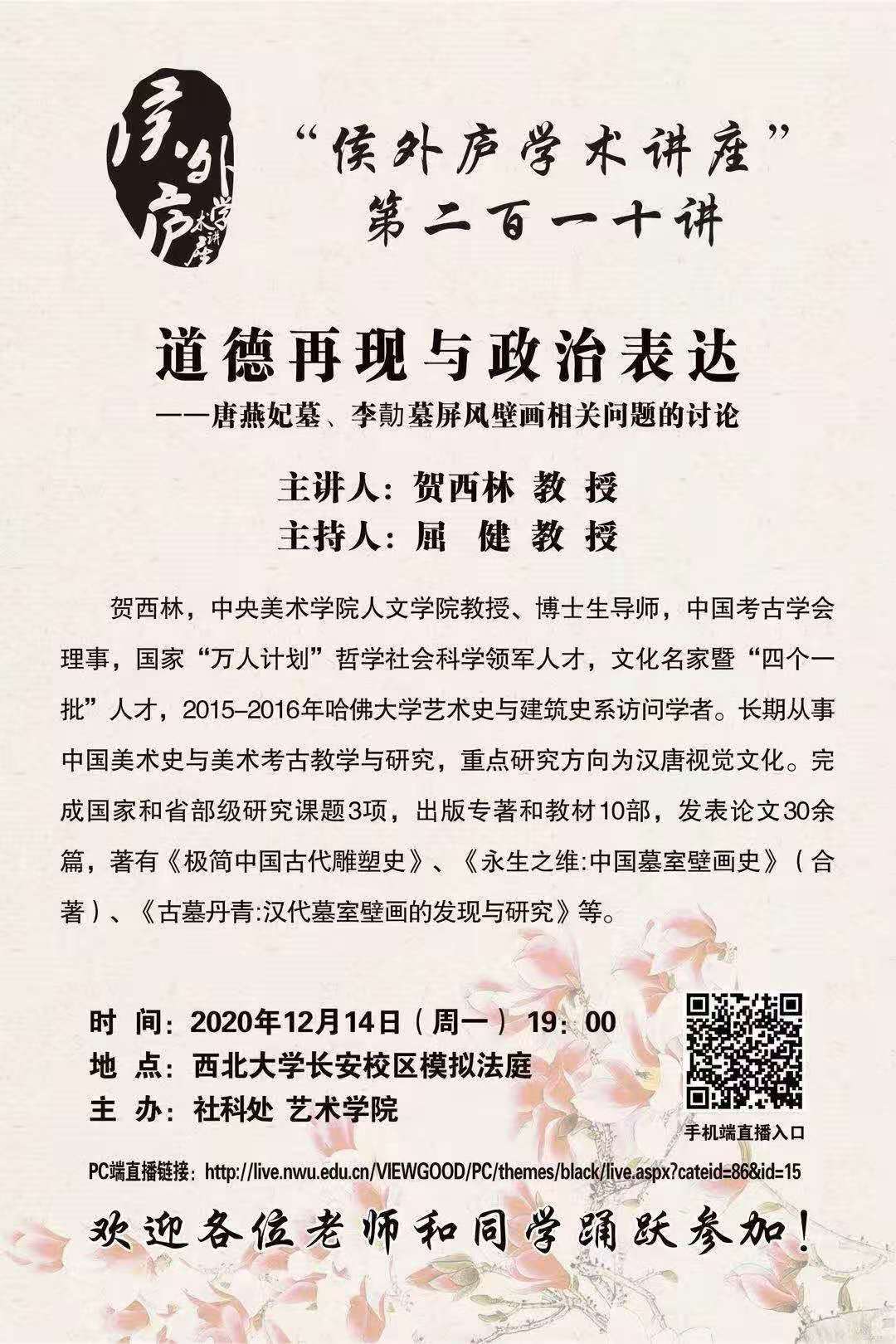 侯外庐学术讲座第二百一十讲:道德再现与政治表达——唐燕妃墓、李勣墓屏风壁画相关问题的讨论