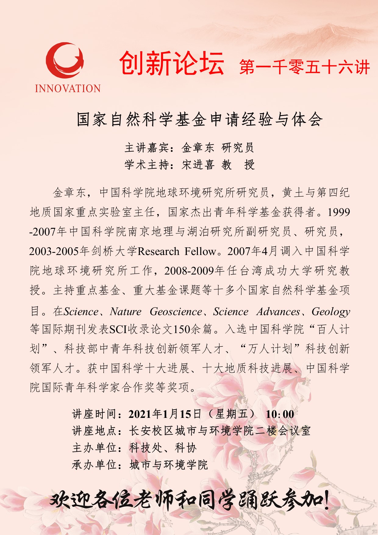 金章东 研究员 伟德国际1949始于英国创新论坛第一千零五十六讲:国家自然科学基金申请经验与体会 讲座时间 2021年1月15日(星期五) 10:00 讲座地点 长安校区城市与环境学院二楼会议室 讲座人介绍 金章东 研究员 讲座内容