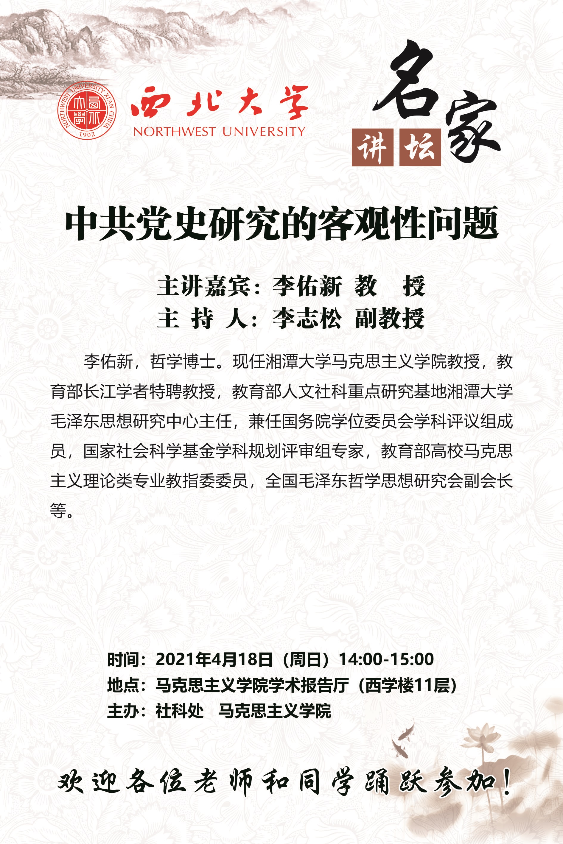 长安校区马克思主义学院学术报告厅(西学楼11层)