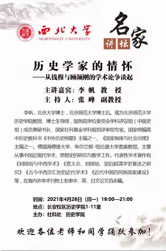 名家讲坛:历史学家的情怀——从钱穆与顾颉刚的学术论争谈起