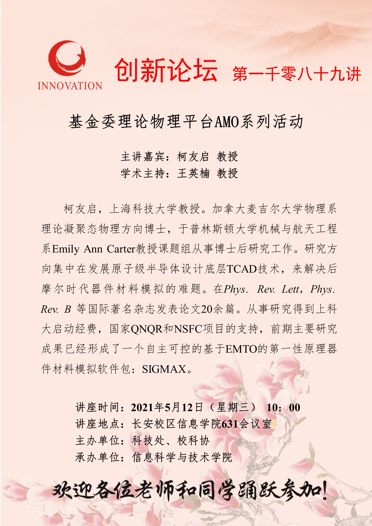 柯友启 教授 伟德国际1949始于英国创新论坛第一千零八十九讲:基金委理论物理平台AMO系列活动 讲座时间 2021年5月12日(星期三) 10:00 讲座地点 长安校区信息学院631会议室 讲座人介绍 柯友启 教授 讲座内容