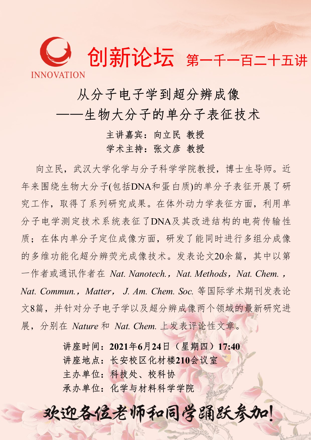 向立民 教授 伟德国际1949始于英国创新论坛第一千一百二十五讲:从分子电子学到超分辨成像——生物大分子的单分子表征技术 讲座时间 2021年6月24日(星期四)17:40 讲座地点 长安校区化材楼210会议室 讲座人介绍 向立民 教授 讲座内容