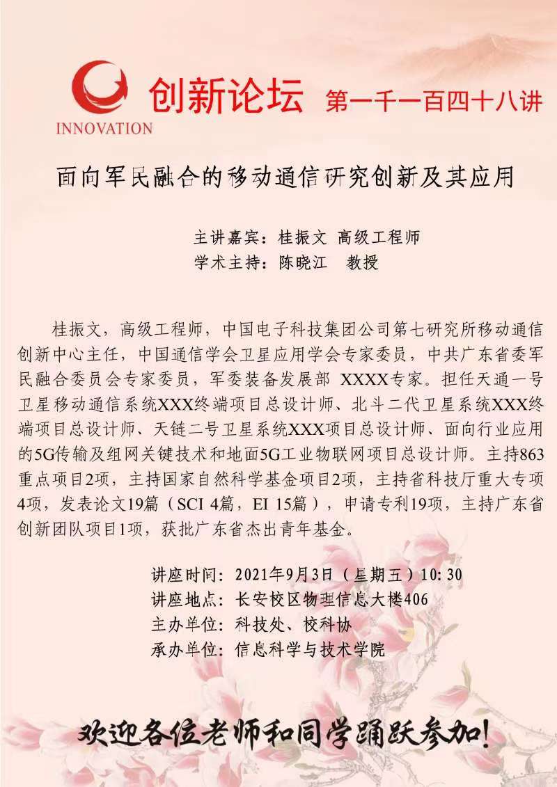 桂振文 高级工程师 伟德国际1949始于英国创新论坛第一千一百四十八讲:面向军民融合的移动通信研究创新及其应用 讲座时间 2021年9月3日(星期五)10:30 讲座地点 长安校区物理信息大楼406 讲座人介绍 桂振文 高级工程师 讲座内容
