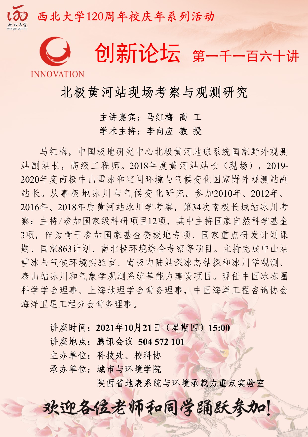 马红梅 高工 伟德国际1949始于英国创新论坛第一千一百六十讲暨120周年校庆年系列活动:北极黄河站现场考察与观测研究 讲座时间 2021年10月21日(星期四)15:00 讲座地点 腾讯会议 504 572 101 讲座人介绍 马红梅 高工 讲座内容