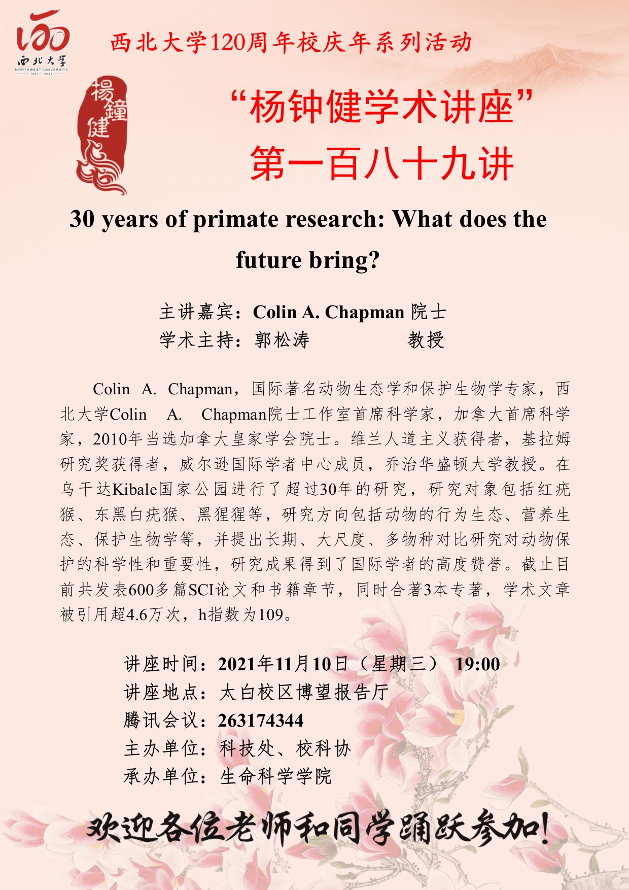“杨钟健学术讲座”第一百八十九讲暨120周年校庆年系列活动:30 years of primate research: What does the future bring?