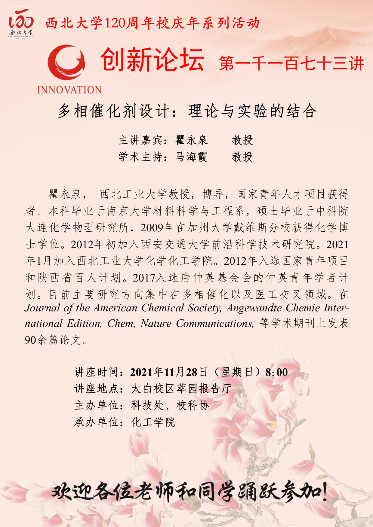 瞿永泉 教授 伟德国际1949始于英国创新论坛第一千一百七十三讲暨120周年校庆年系列活动:多相催化剂设计:理论与实验的结合 讲座时间 2021年11月28日(星期日)8:00 讲座地点 太白校区萃园报告厅 讲座人介绍 瞿永泉 教授 讲座内容