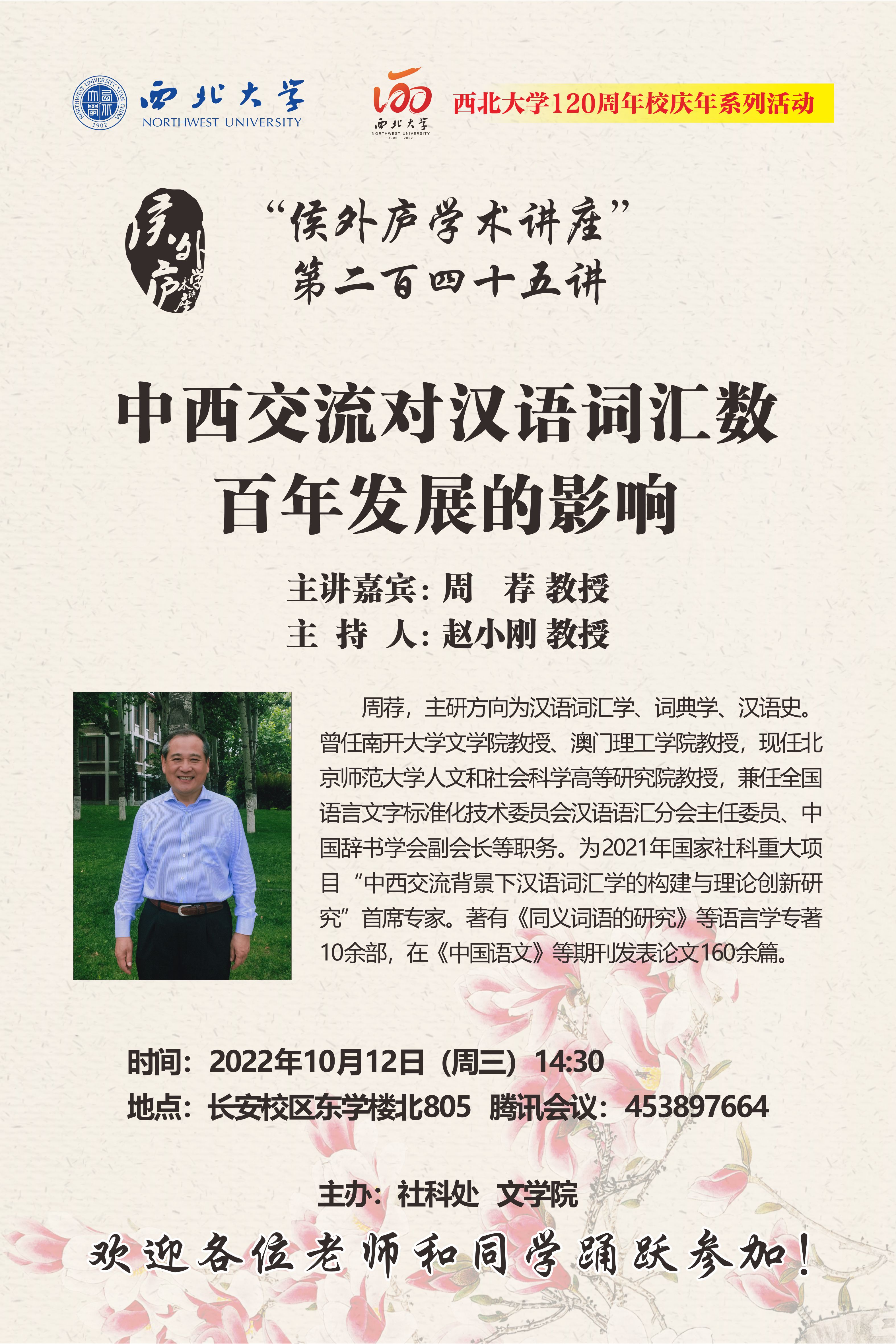侯外庐学术讲座第二百四十五讲暨120周年校庆年系列活动:中西交流对汉语词汇数百年发展的影响
