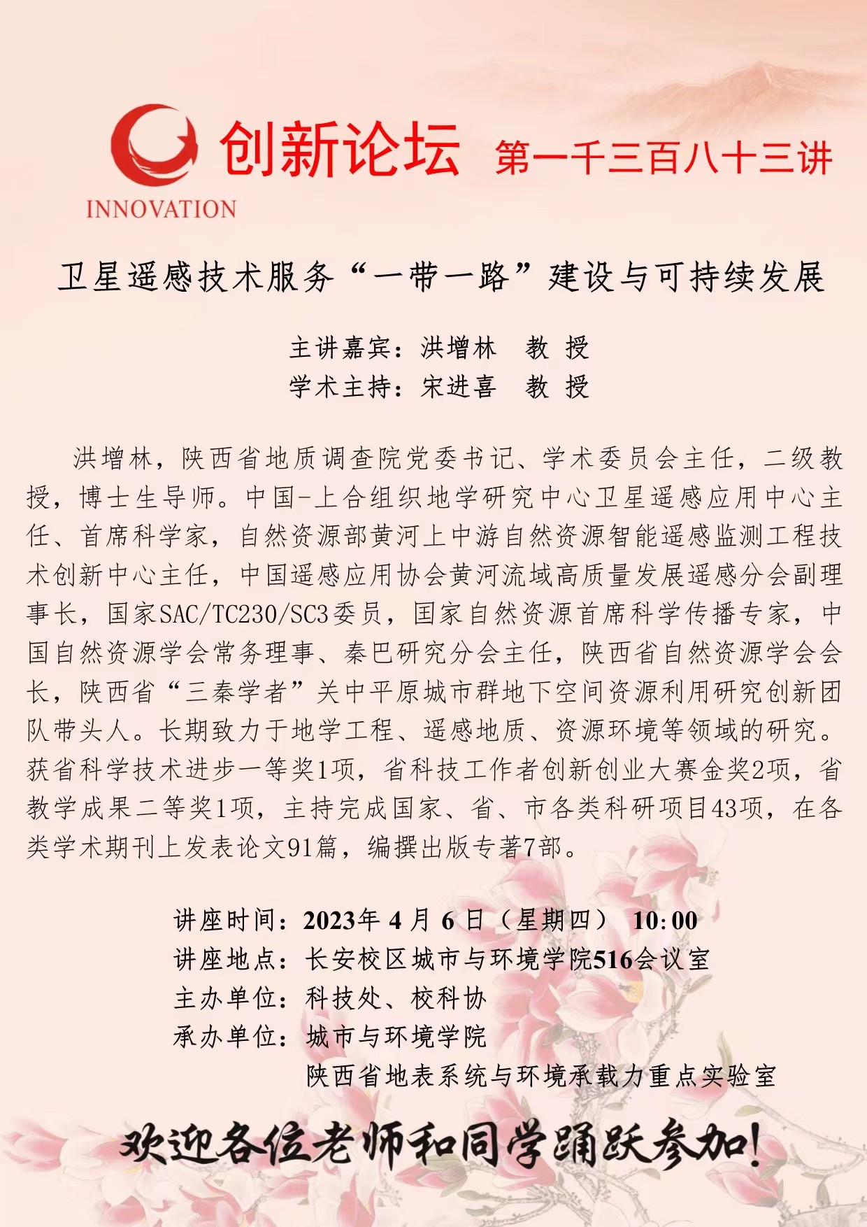 洪增林 教 授 伟德国际1949始于英国创新论坛第一千三百八十三讲:卫星遥感技术服务“一带一路”建设与可持续发展 讲座时间 2023年 4 月 6 日(星期四) 10:00 讲座地点 长安校区城市与环境学院516会议室 讲座人介绍 洪增林 教 授 讲座内容