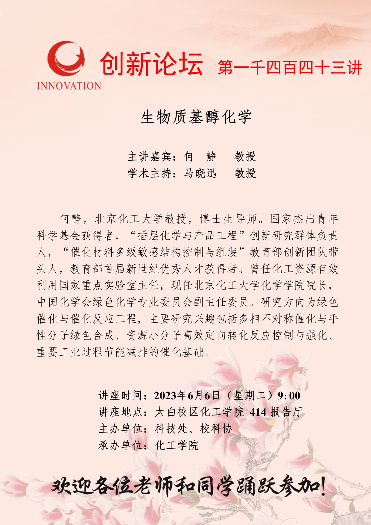 何静 教授 伟德国际1949始于英国创新论坛第一千四百四十三讲:生物质基醇化学 讲座时间 2023年6月6日(星期二)9:00 讲座地点 太白校区化工学院 414 报告厅 讲座人介绍 何静 教授 讲座内容