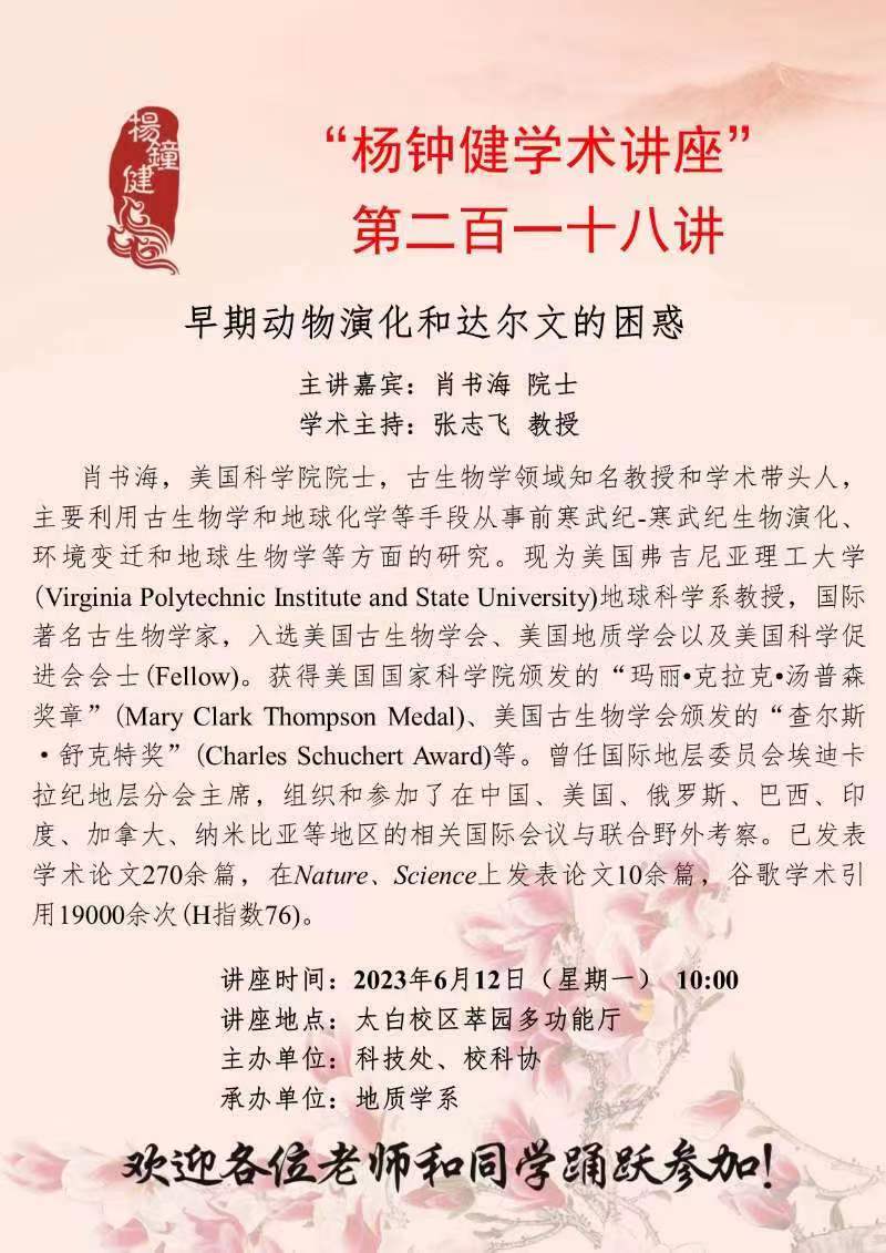 “杨钟健学术讲座”第二百一十八讲:早期动物演化和达尔文的困惑