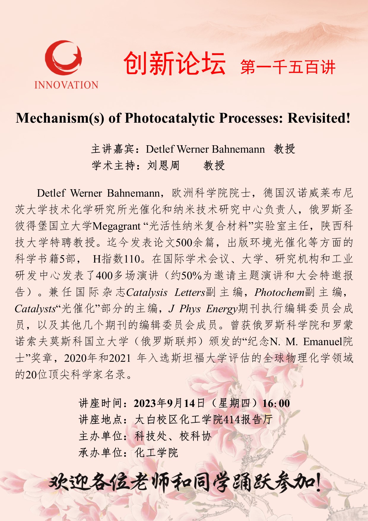 Detlef Werner Bahnemann 教授 伟德国际1949始于英国创新论坛第一千五百讲:Mechanism(s) of Photocatalytic Processes: Revisited! 讲座时间 2023年9月14日(星期四)16:00 讲座地点 太白校区化工学院414报告厅 讲座人介绍 Detlef Werner Bahnemann 教授 讲座内容