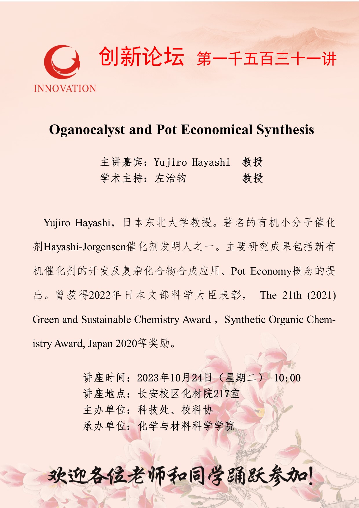 Yujiro Hayashi 教授 伟德国际1949始于英国创新论坛第一千五百三十一讲:Oganocalyst and Pot Economical Synthesis 讲座时间 2023年10月24日(星期二) 10:00 讲座地点 长安校区化材院217室 讲座人介绍 Yujiro Hayashi 教授 讲座内容
