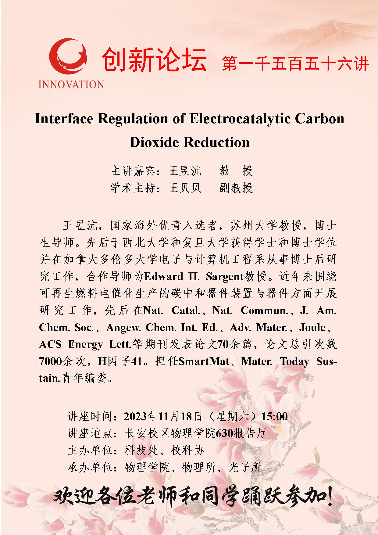 王昱沆 教授 伟德国际1949始于英国创新论坛第一千五百五十六讲:Interface Regulation of Electrocatalytic Carbon Dioxide Reduction 讲座时间 2023年11月18日(星期六)15:00 讲座地点 长安校区物理学院630报告厅 讲座人介绍 王昱沆 教授 讲座内容