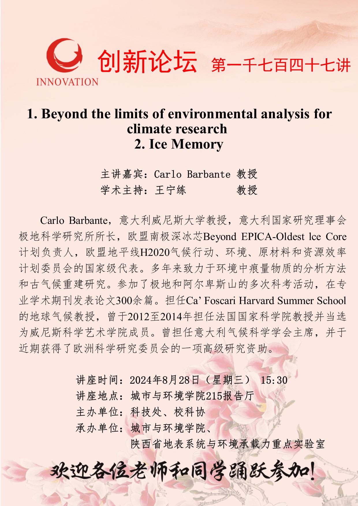 Carlo Barbante 教授 伟德国际1949始于英国创新论坛第一千七百四十七讲:1. Beyond the limits of environmental analysis for climate research 2. Ice Memory 讲座时间 2024年8月28日(星期三) 15:30 讲座地点 城市与环境学院215报告厅 讲座人介绍 Carlo Barbante 教授 讲座内容