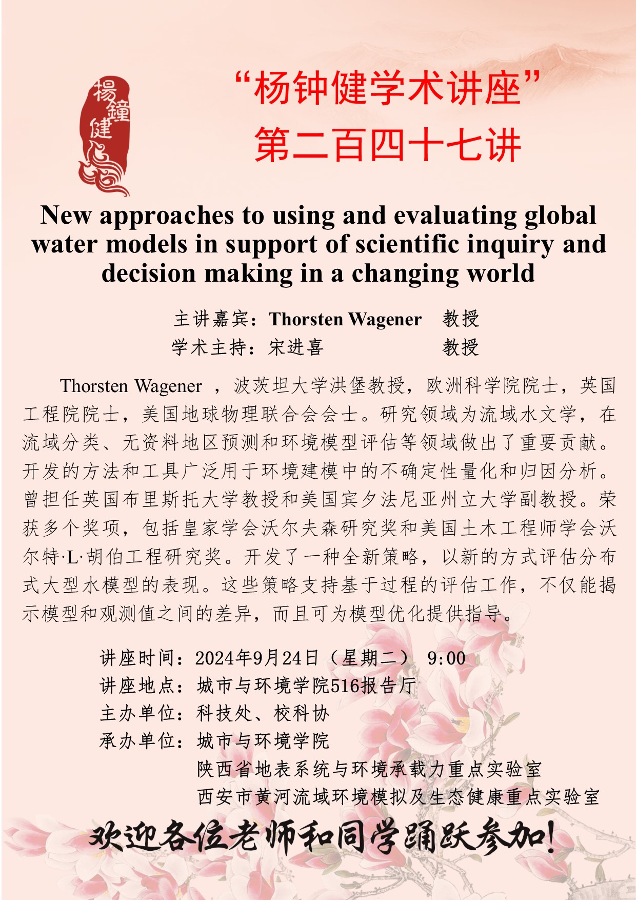 “杨钟健学术讲座”第二百四十七讲:New approaches to using and evaluating global water models in support of scientific inquiry and decision making in a changing world