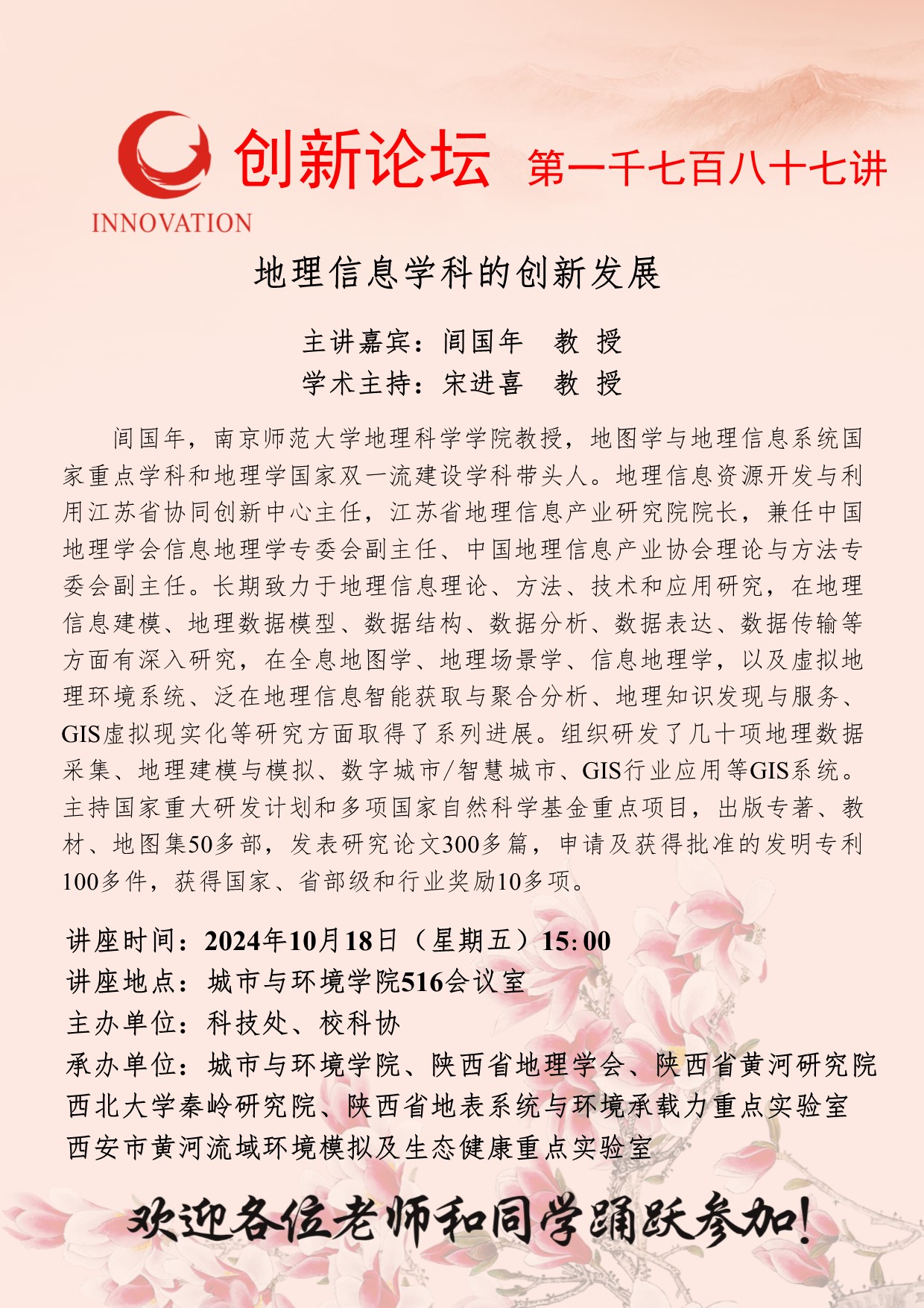 闾国年 教授 伟德国际1949始于英国创新论坛第一千七百八十七讲:地理信息学科的创新发展 讲座时间 2024年10月18日(星期五)15:00 讲座地点 城市与环境学院516会议室 讲座人介绍 闾国年 教授 讲座内容