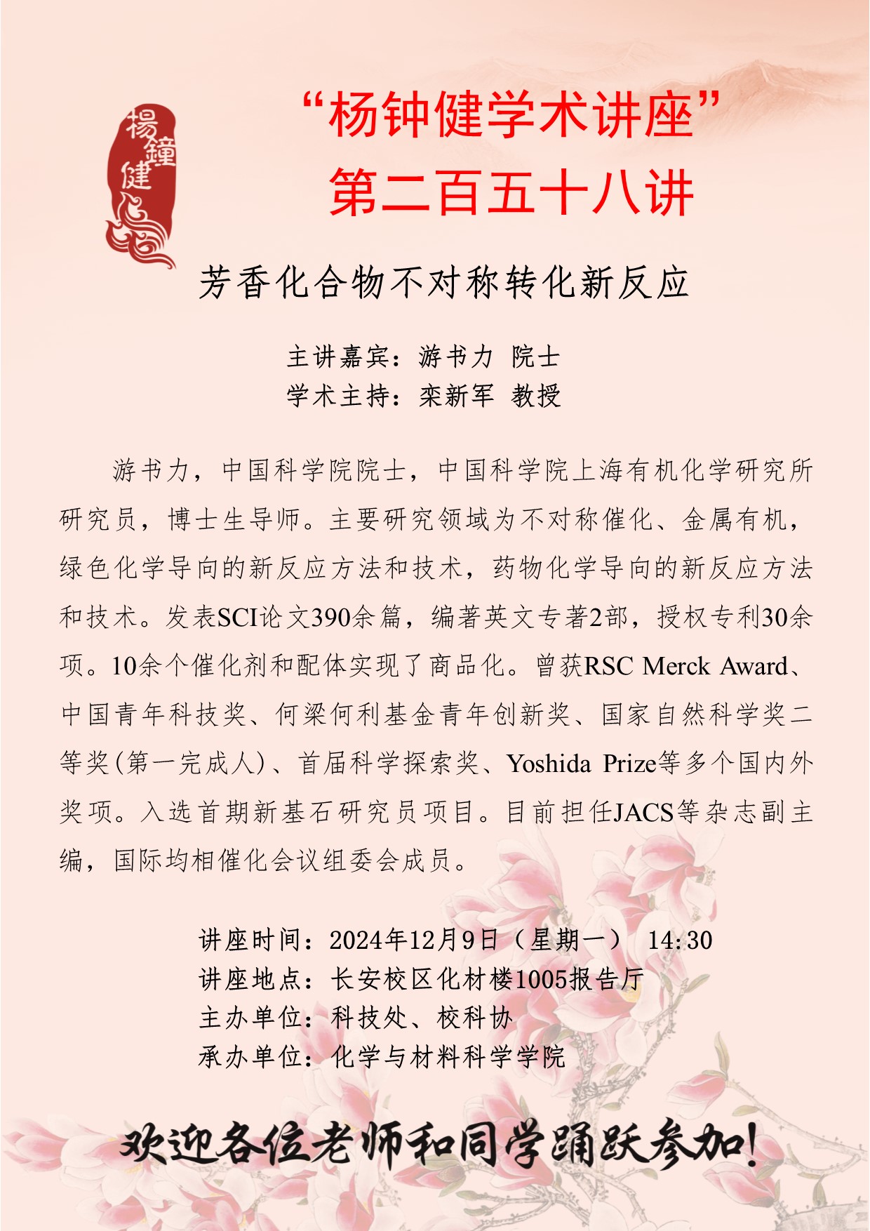 “杨钟健学术讲座”第二百五十八讲: 芳香化合物不对称转化新反应