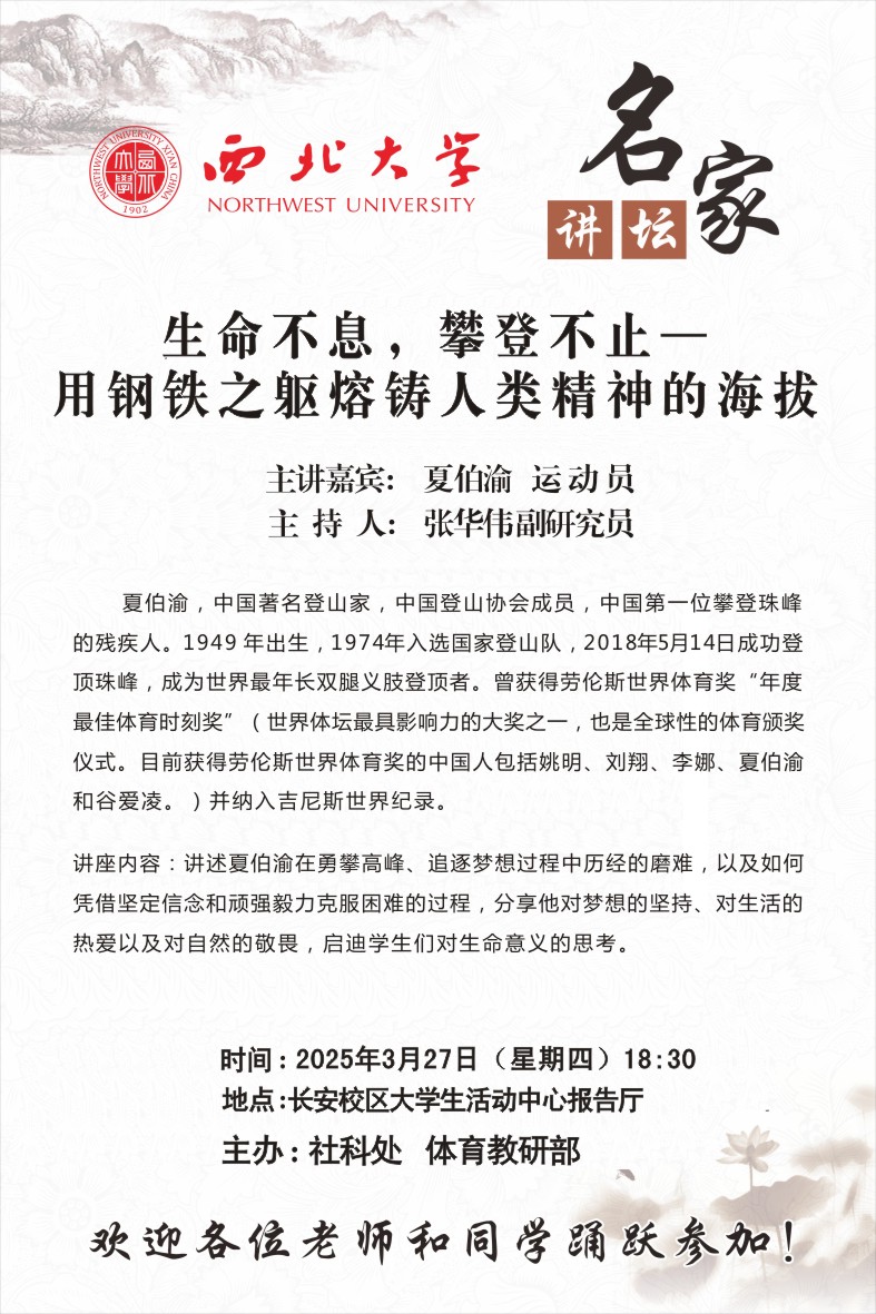 名家讲坛:生命不息,攀登不止-用钢铁之躯熔铸人类精神的海拔