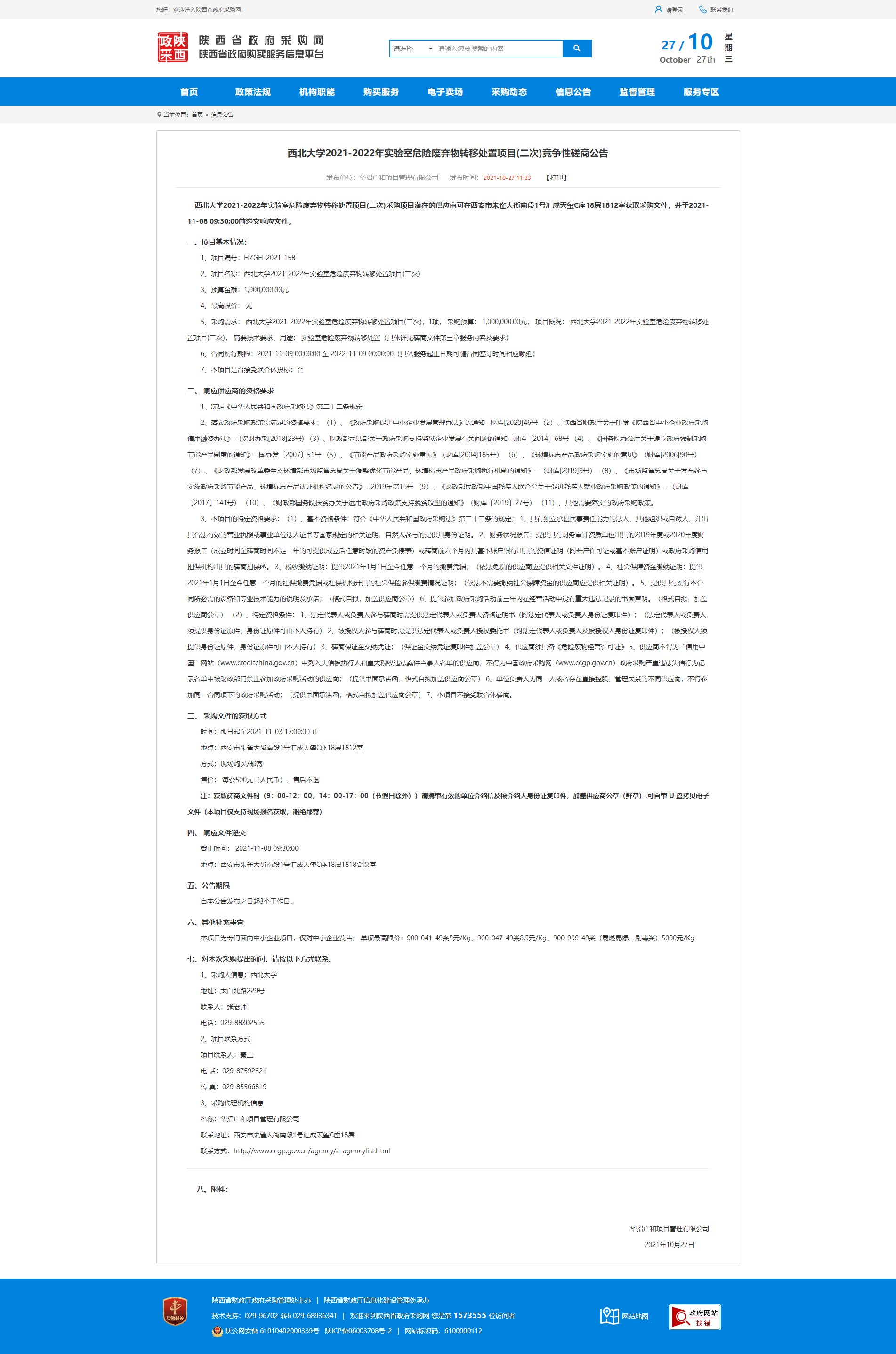 伟德国际1949始于英国2021-2022年实验室危险废弃物转移处置项目(二次)竞争性磋商公告