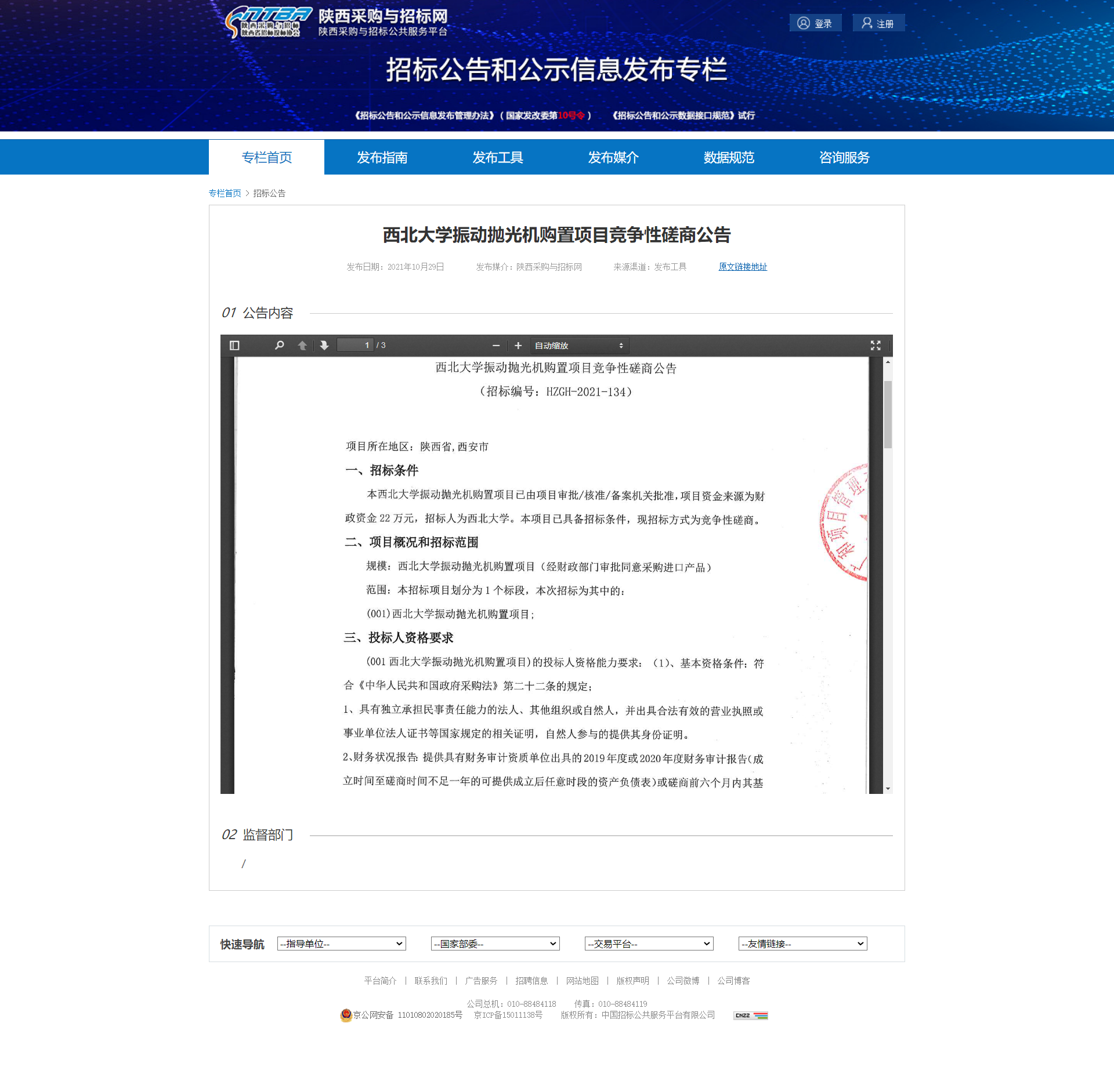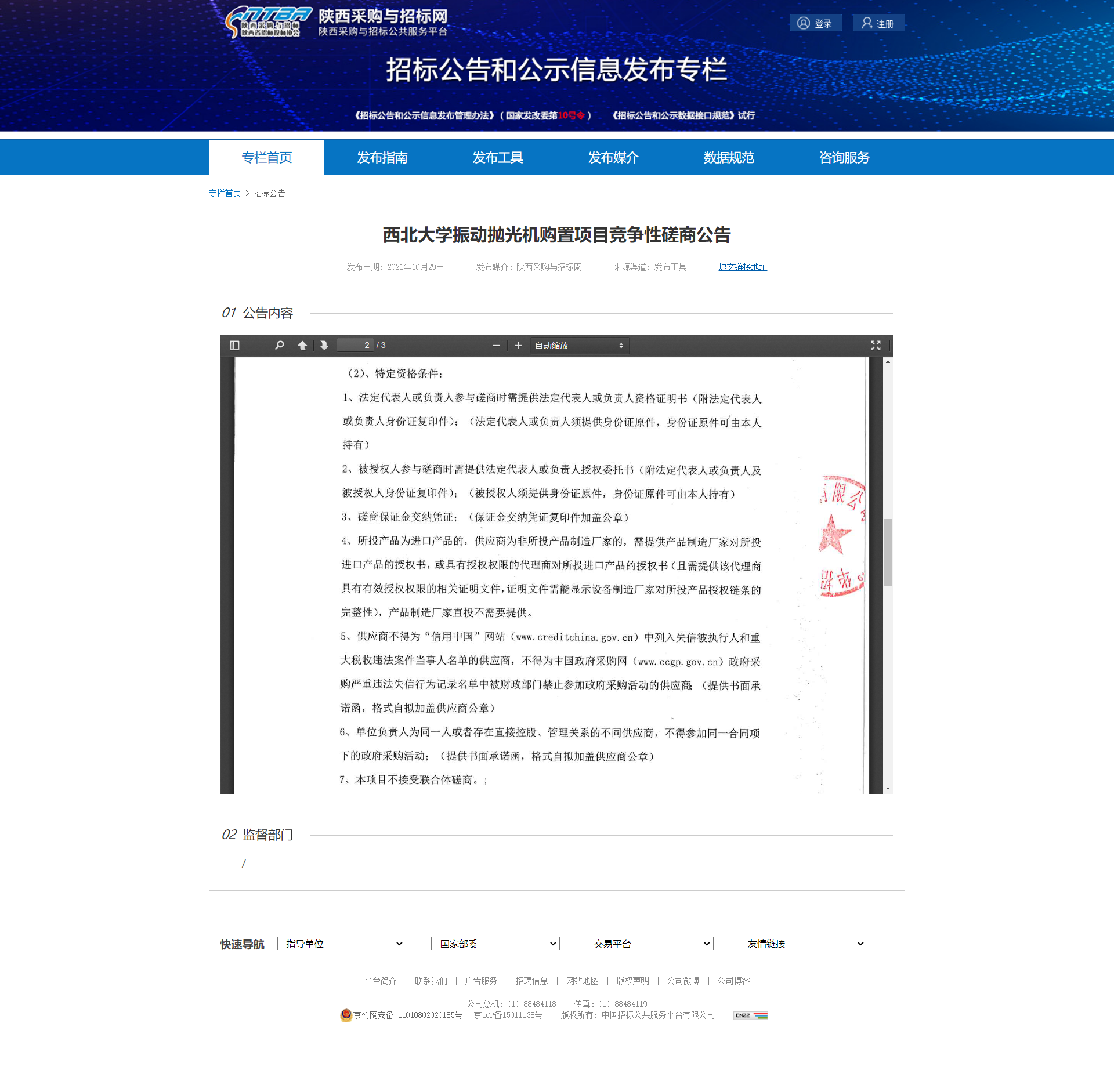 伟德国际1949始于英国振动抛光机购置项目竞争性磋商公告 作者: 编辑:薛利娟 时间:2021-10-29 原公告地址:http://bulletin.sntba.com/biddingBulletin/2021-10-29/358519.html