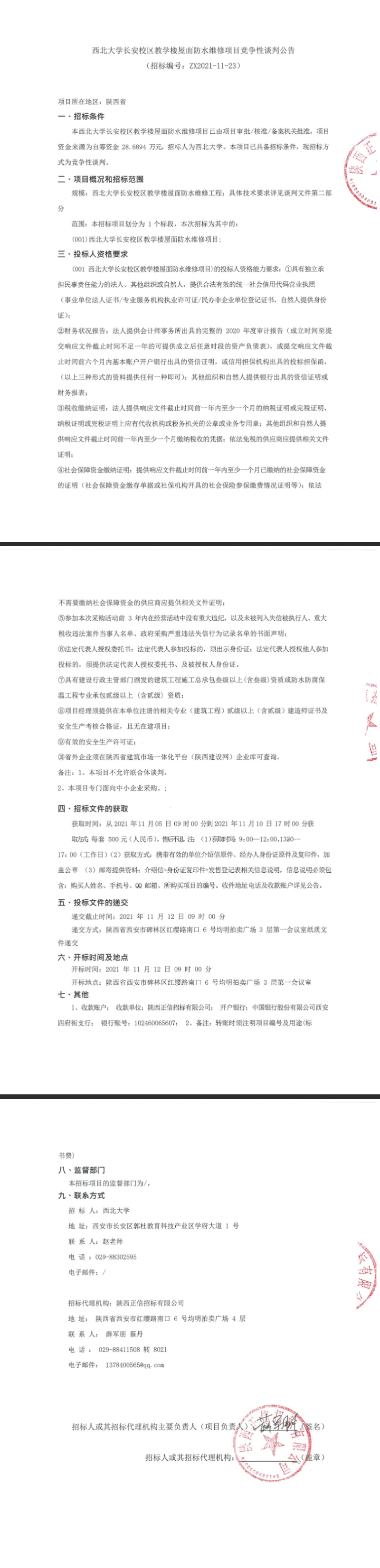 伟德国际1949始于英国长安校区教学楼屋面防水维修项目竞争性谈判公告