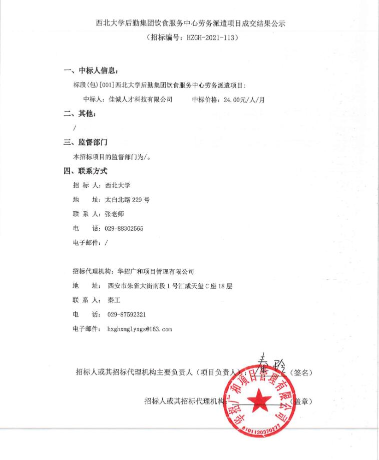 关于伟德国际1949始于英国后勤集团饮食服务中心劳务派遣项目成交结果公告