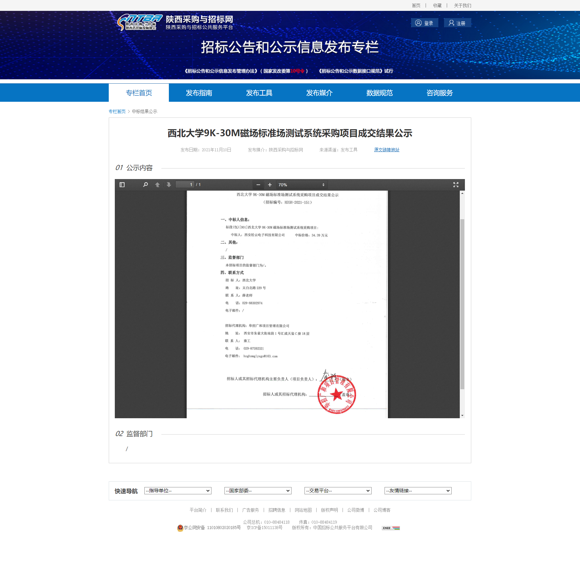 伟德国际1949始于英国9K-30M磁场标准场测试系统采购项目成交结果公示 作者: 编辑:薛利娟 时间:2021-11-11 原公告网址:http://bulletin.sntba.com/resultBulletin/2021-11-10/362788.html