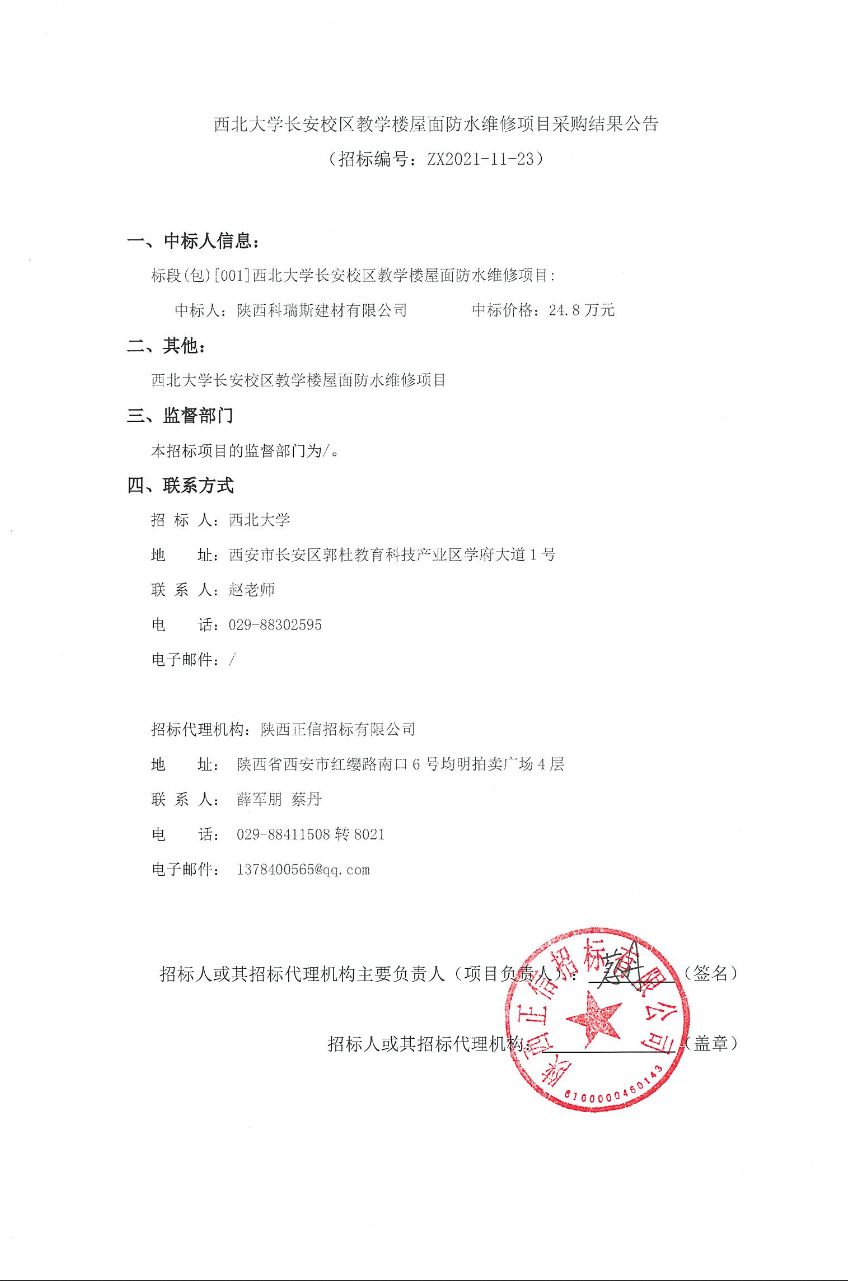 伟德国际1949始于英国长安校区教学楼屋面防水维修项目采购结果公告